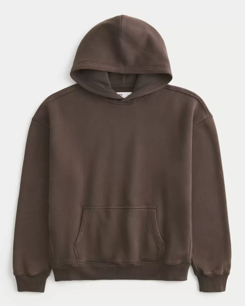 This super soft fleece hoodie has long sleeves and a front pouch pocket. Washed look, hood. Boxy Fit. Imported.