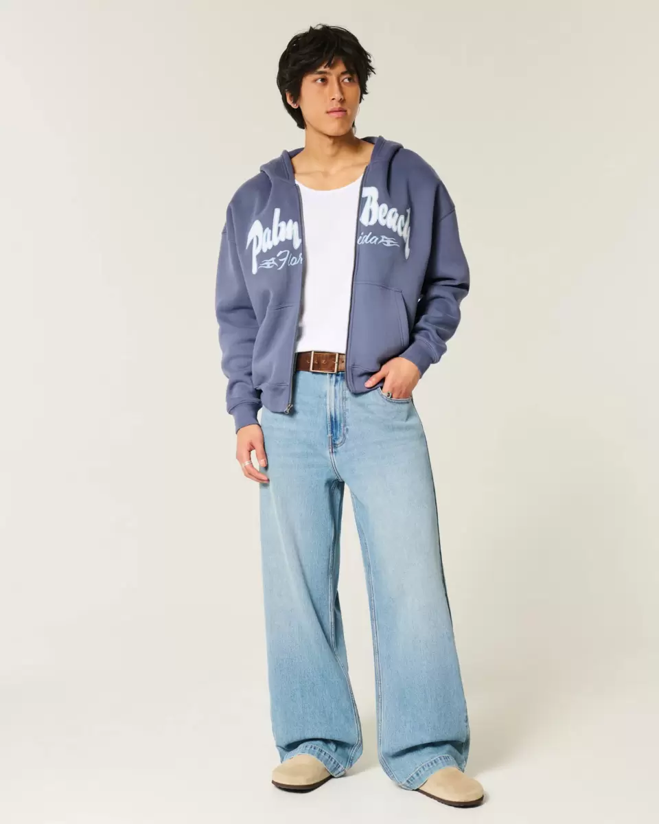 Super soft and comfortable, this fleece sweatshirt features Palm Beach graphic applique and embroidery. Full zip-up closure, front pockets. Boxy Fit. Imported.