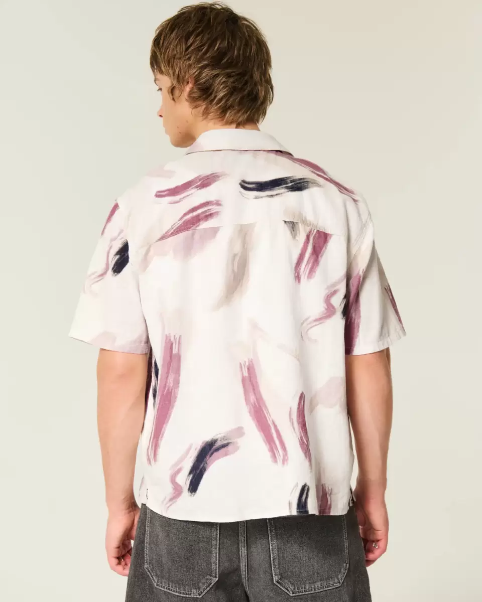 A classic shirt in a soft linen blend, designed with a button closure. Short sleeves, all-over pattern, collar. Imported.