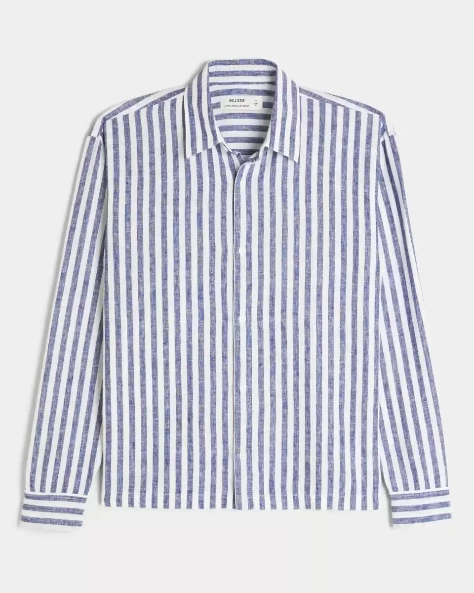 This classic, comfortable shirt is made with a soft linen blend. Full button closure, long sleeves, collar. Relaxed Fit. Imported.