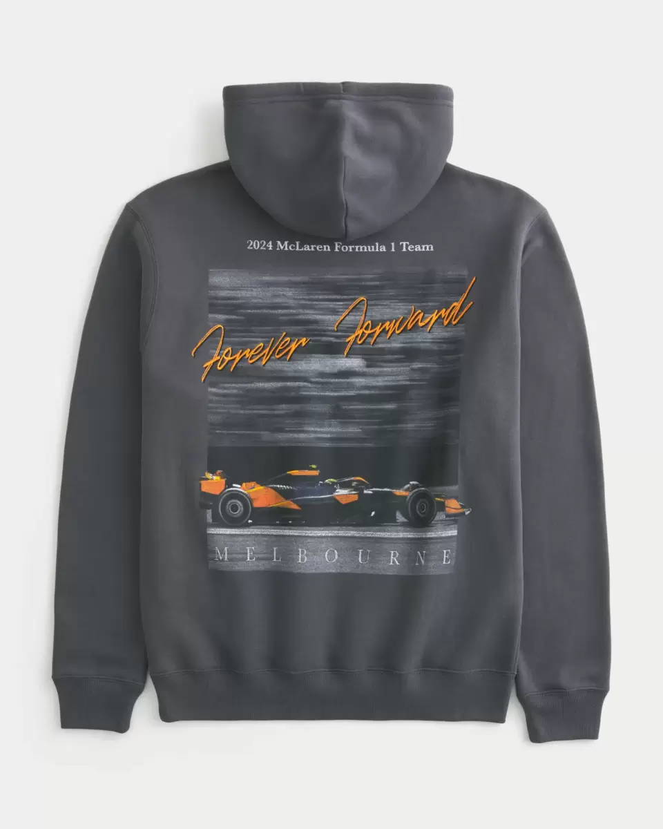 This super soft fleece hoodie features official licensed McLaren Forever Forward graphics at the left chest and back. Embroidery and print graphics. Soft drawstring hood, front pouch pocket, long sleeves. Relaxed Fit. Imported.