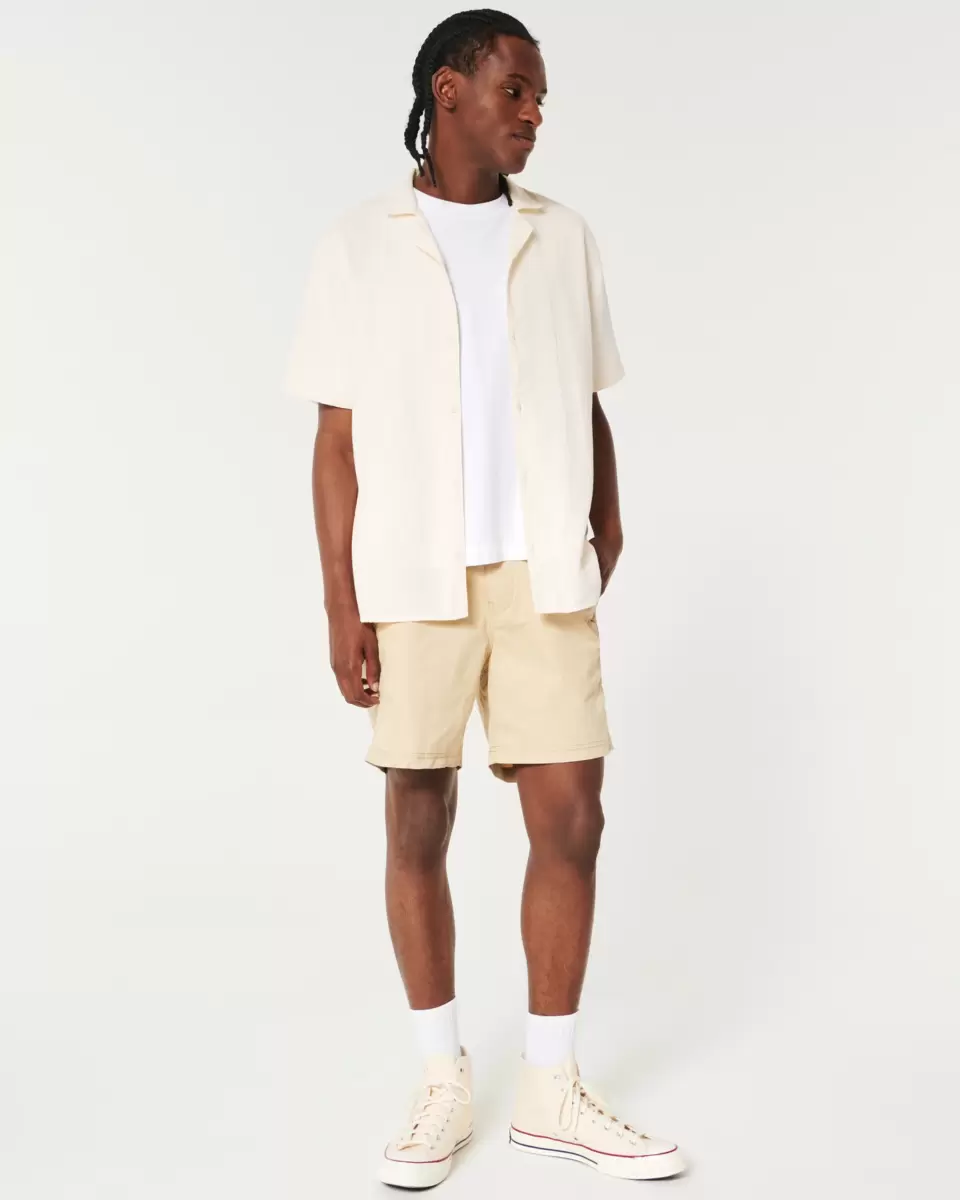 A soft, comfortable shirt in 100% cotton with all-over texture. Short sleeves, full button closure, collar. Relaxed Fit. Imported.