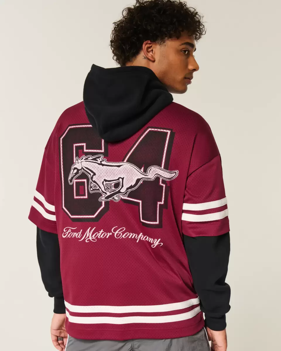 A classic jersey in soft mesh fabric featuring official licensed Ford Mustang print graphics at the front and back. V-neckline, stripes, short sleeves. Baggy Fit. Imported.