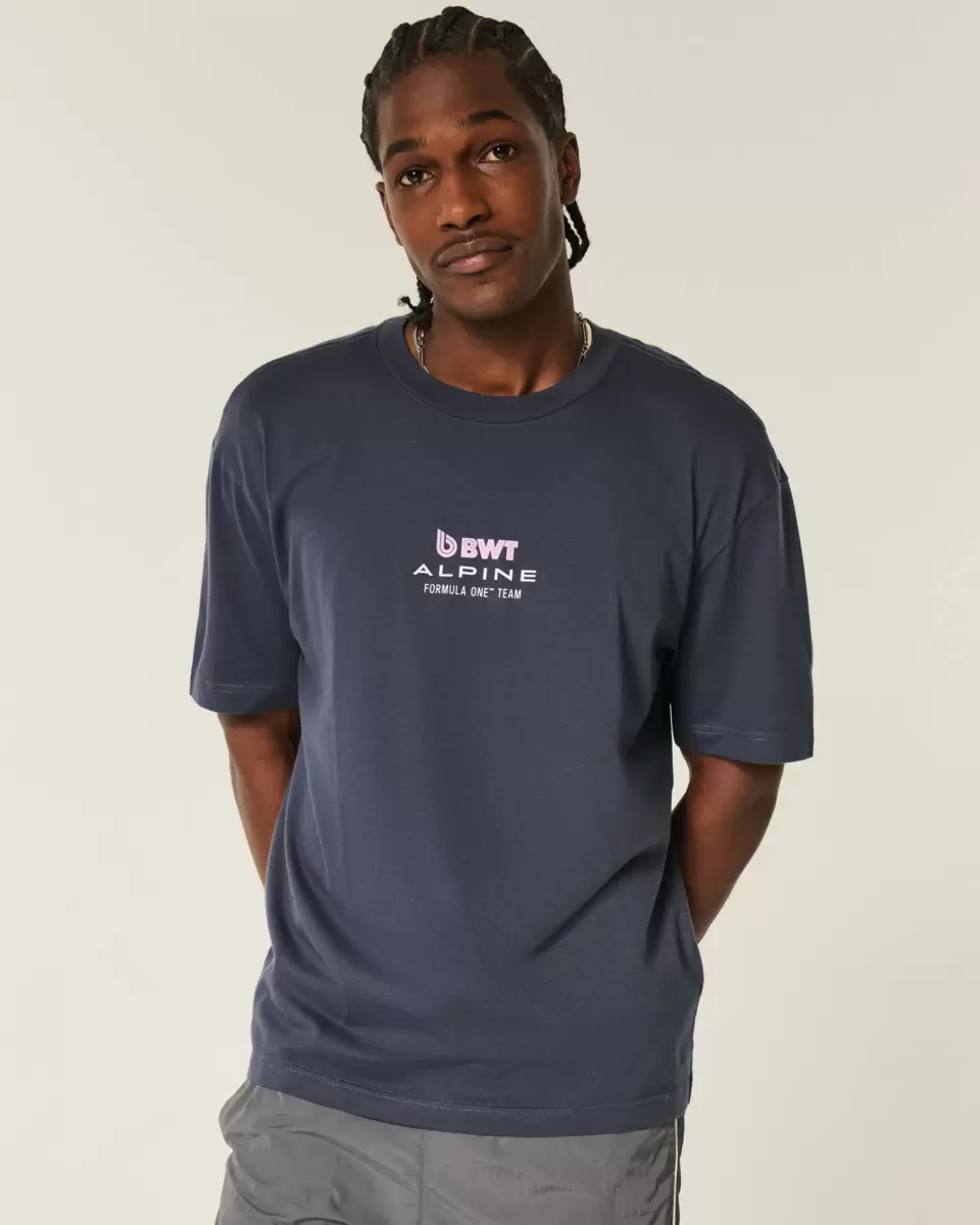 This super soft 100% cotton tee features official licensed BWT Alpine Formula One Team print graphics at the front and back. Montreal graphics at the back. Crew neckline, short sleeves. Imported.