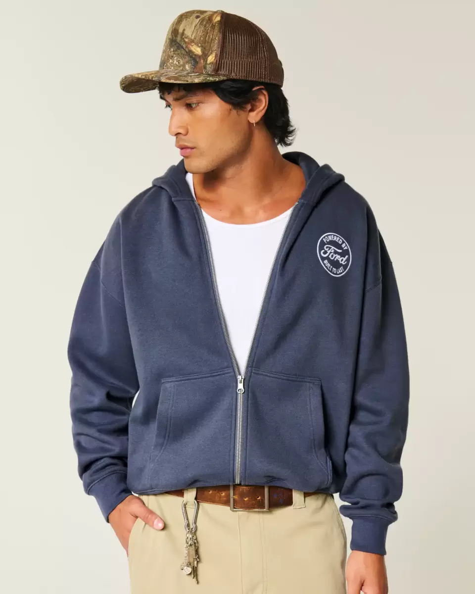 Be the first to review “Boxy Ford Graphic Zip-Up Hoodie”