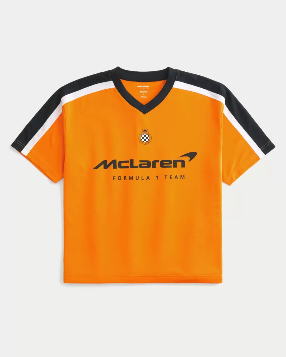 This classic, super soft soccer jersey features official licensed McLaren Formula 1 Team print graphics at the front and Oscar Piastri graphics at the back. Short sleeves, v-neckline. Boxy Fit. Imported.