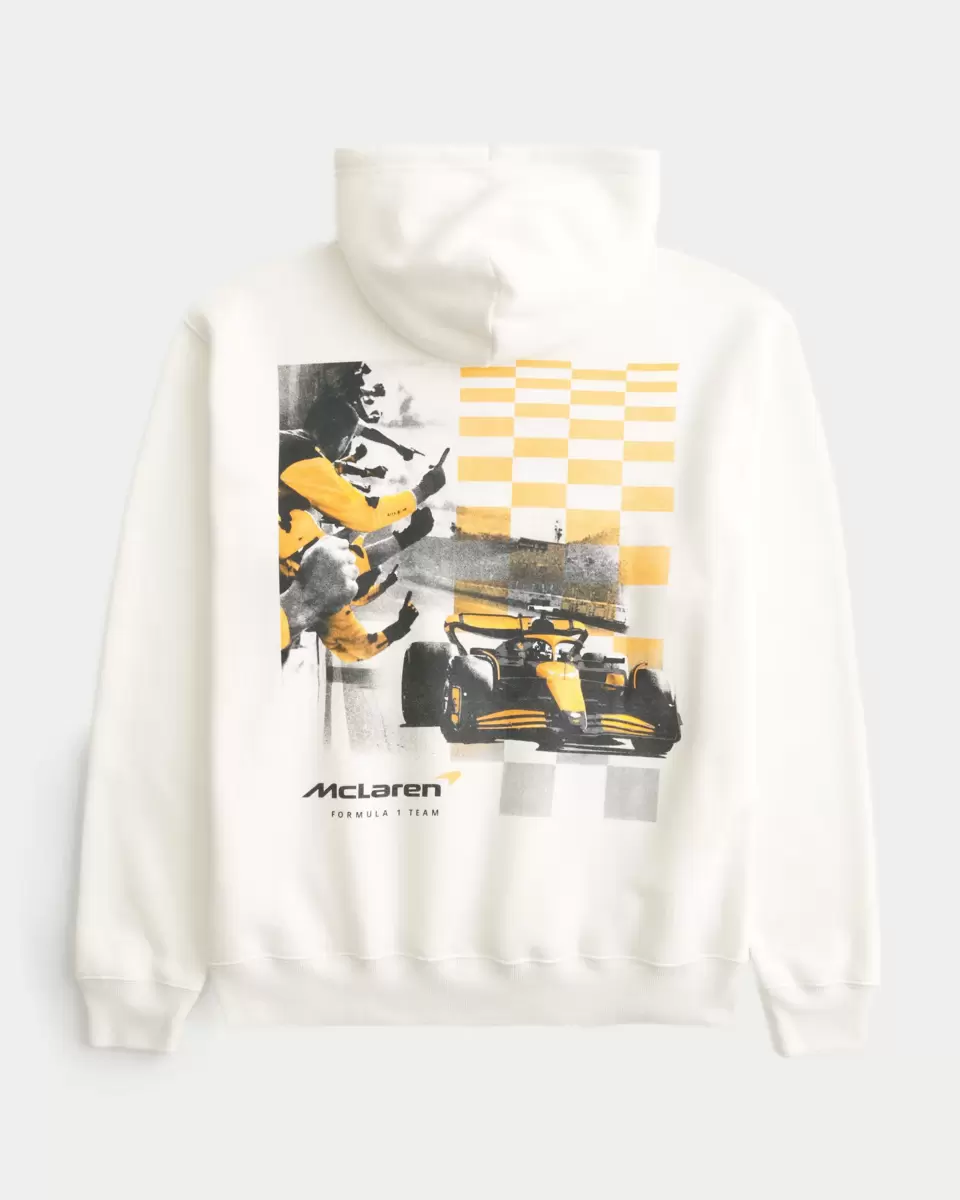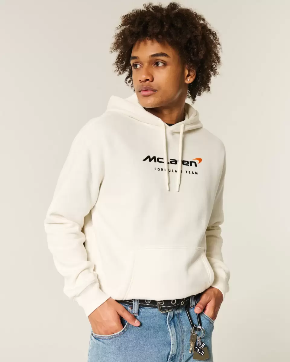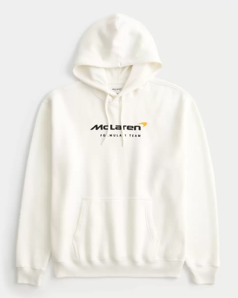 This super soft fleece hoodie features official licensed McLaren Formula 1 Team graphic embroidery at the front and print graphics at the back. Front pouch pocket, long sleeves, drawstring hood. Relaxed Fit. Imported.