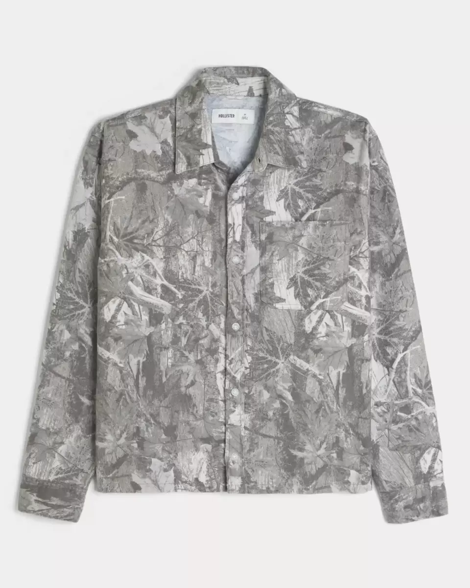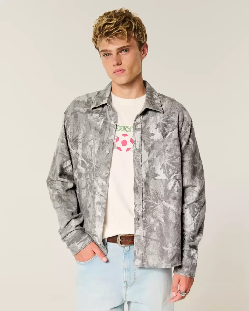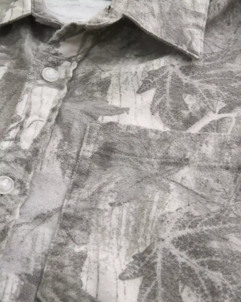 A classic shirt in soft cotton flannel fabric, featuring an all-over camo pattern. Full button closure, long sleeves, left chest pocket, collar. Boxy Fit. Imported.
