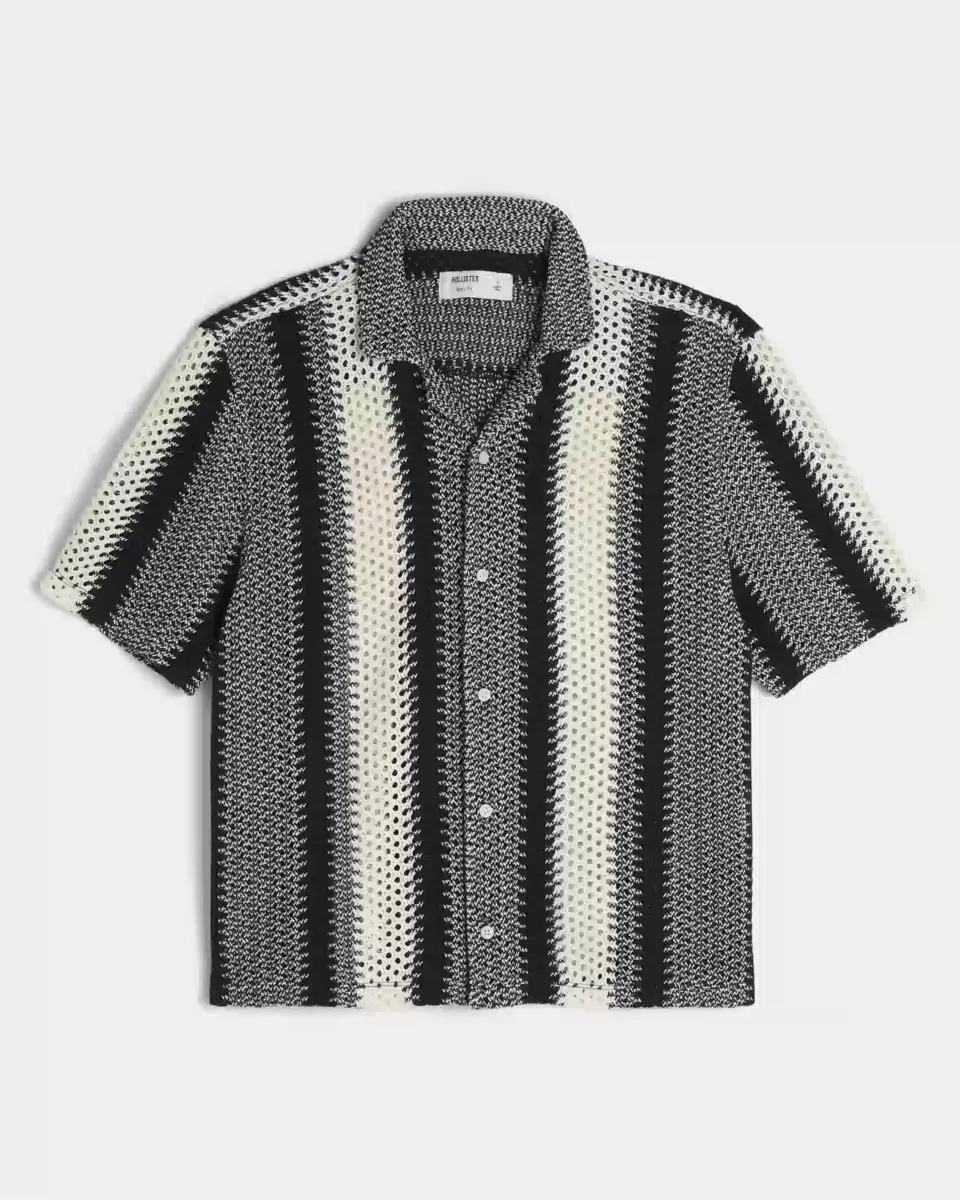 A short-sleeve shirt in soft crochet-style fabric with a camp collar. Boxy Fit. Imported.