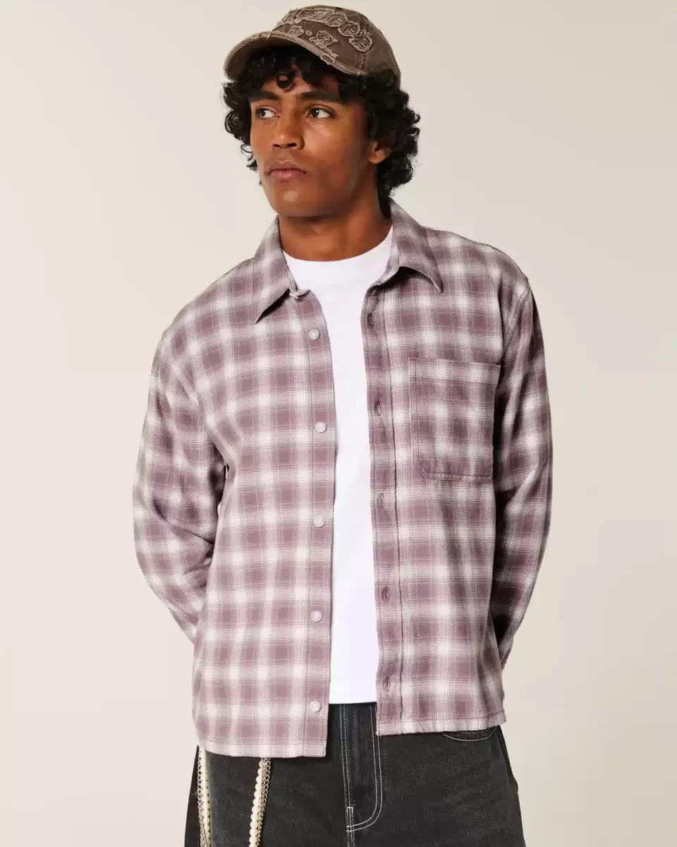 A vintage-inspired shirt in soft flannel fabric with a full button closure and left chest pocket. Long sleeves, collar. Boxy Fit. Imported.