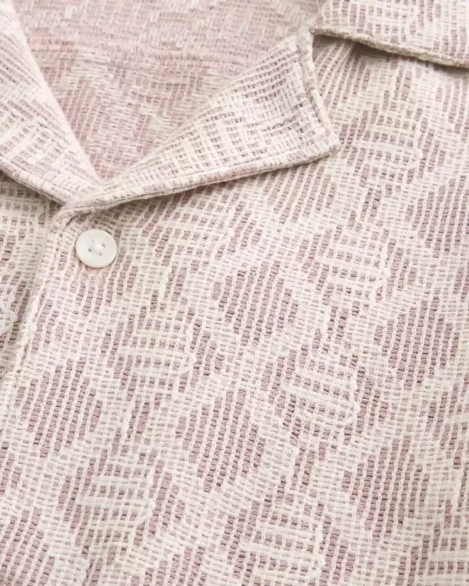 Made with soft crochet-style fabric, this classic button-through shirt features an all-over diamond pattern and short sleeves. Button closure, collar. Boxy Fit. Imported.