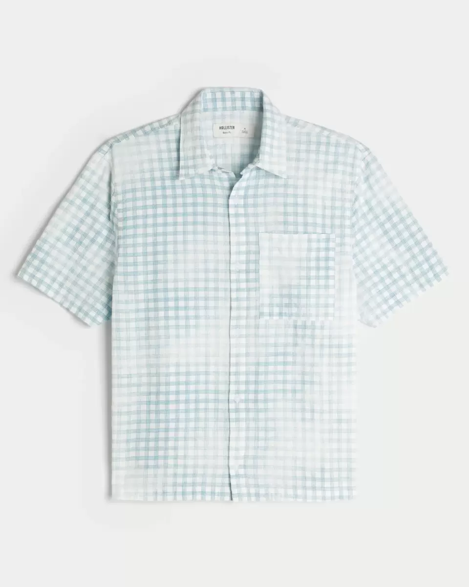 This classic short-sleeve shirt has a full button closure and left chest pocket. Short sleeves, collar. Boxy Fit. Imported.