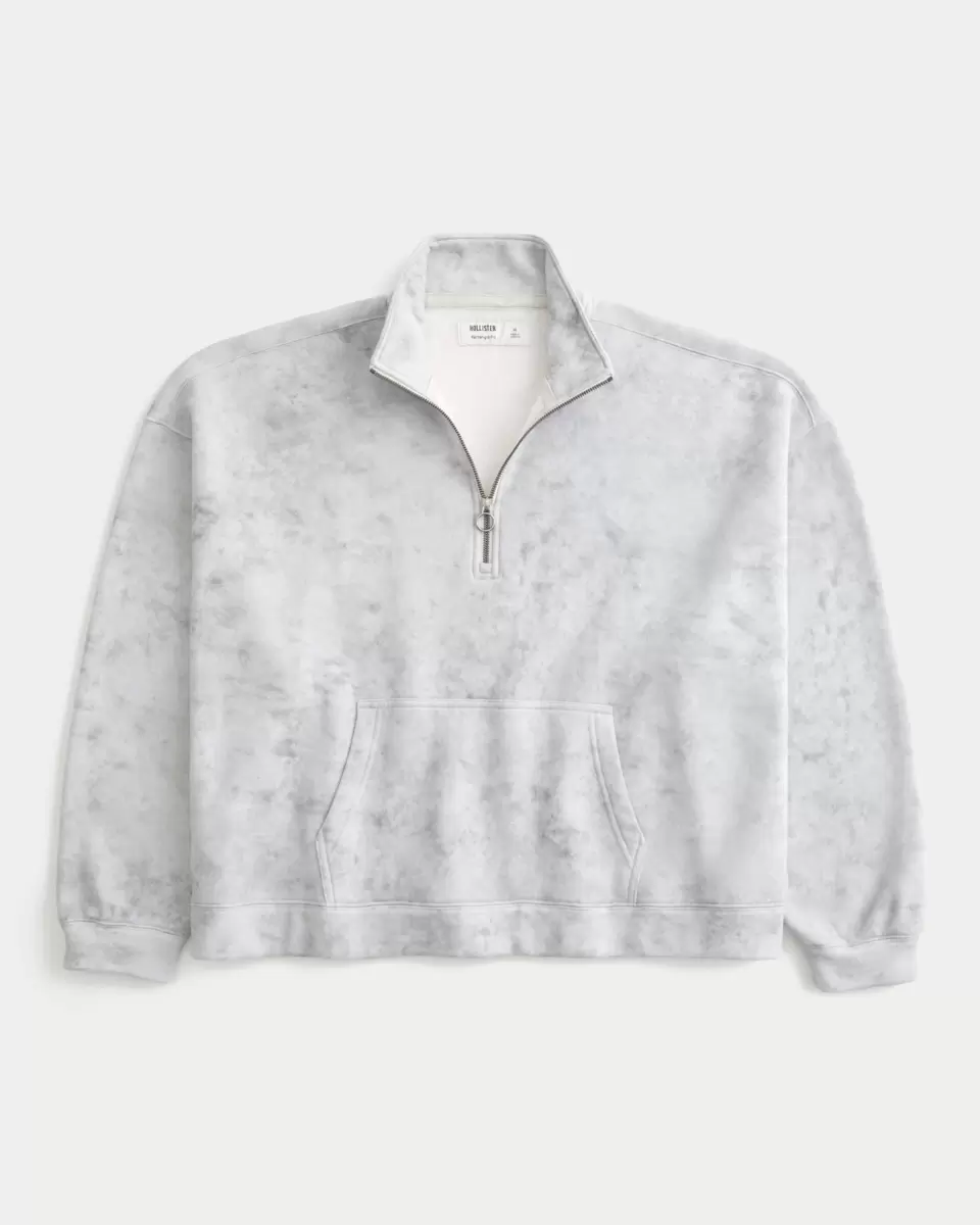 A super soft fleece sweatshirt with a mock-neck collar, quarter-zip closure and front pouch pocket. Long sleeves, micro logo embroidery detail at left sleeve. Rectangle Fit. Imported.