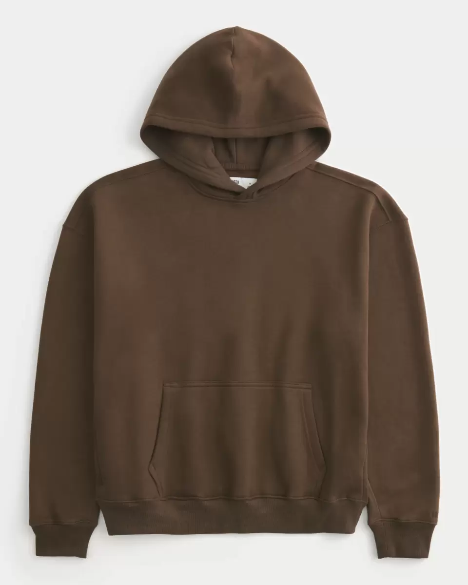 A super soft fleece hoodie with long sleeves and a front pouch pocket. Hood. Boxy Fit. Imported.