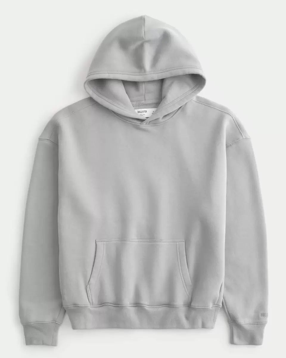 A comfortable and super soft fleece hoodie with a front pouch pocket and long sleeves. Hood. Boxy Fit. Imported.
