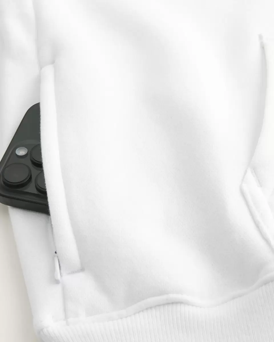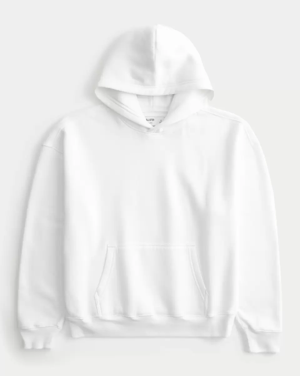 A super soft fleece hoodie with long sleeves and a front pouch pocket. Hood. Boxy Fit. Imported.