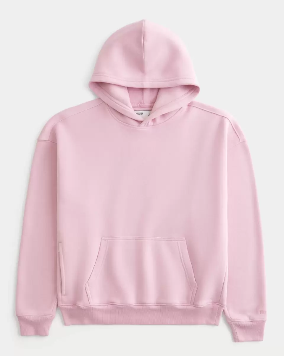 A super soft fleece hoodie with long sleeves and a front pouch pocket. Hood. Boxy Fit. Imported.