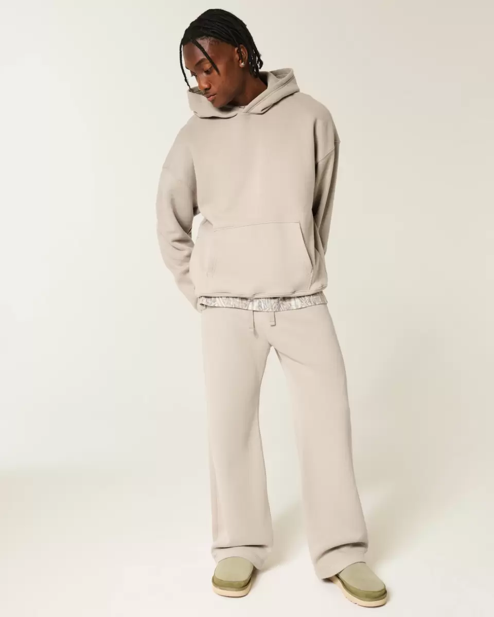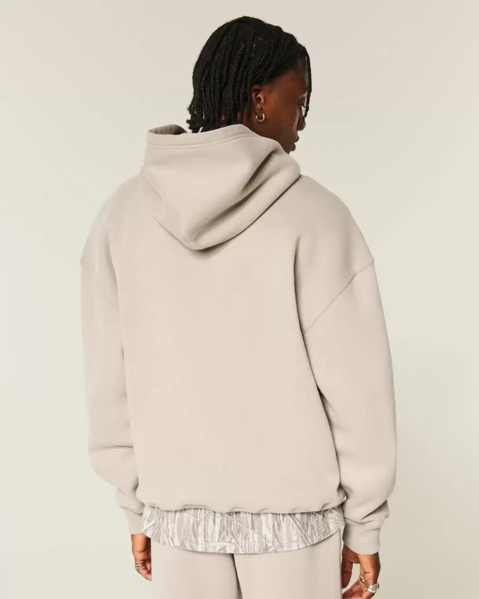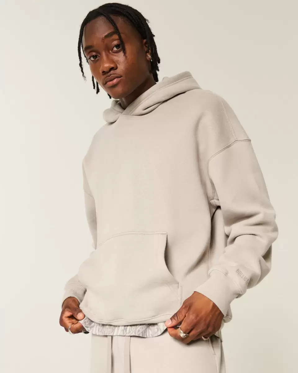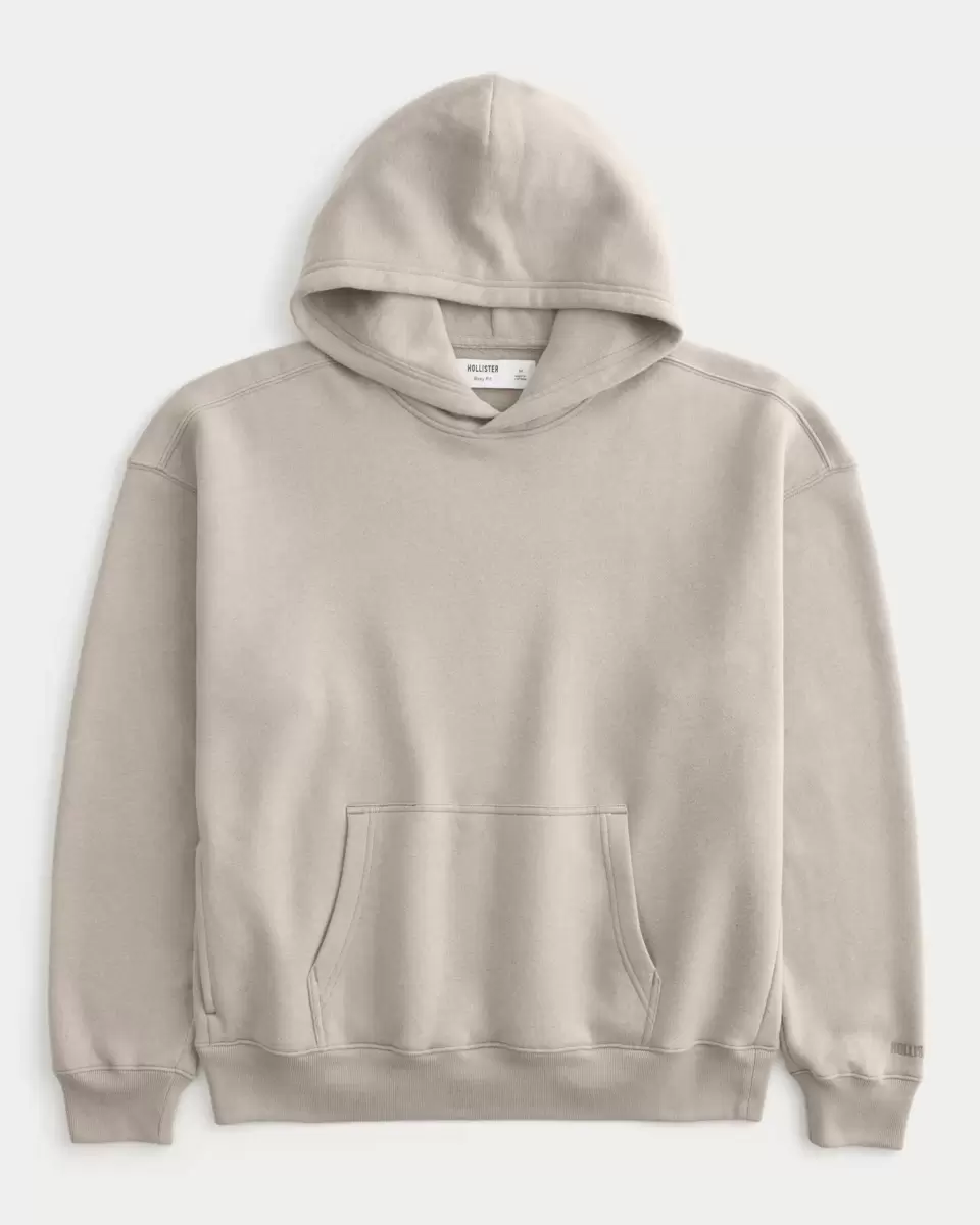 A super soft hoodie in fleece fabric with a front pouch pocket. Long sleeves, hood. Boxy Fit.