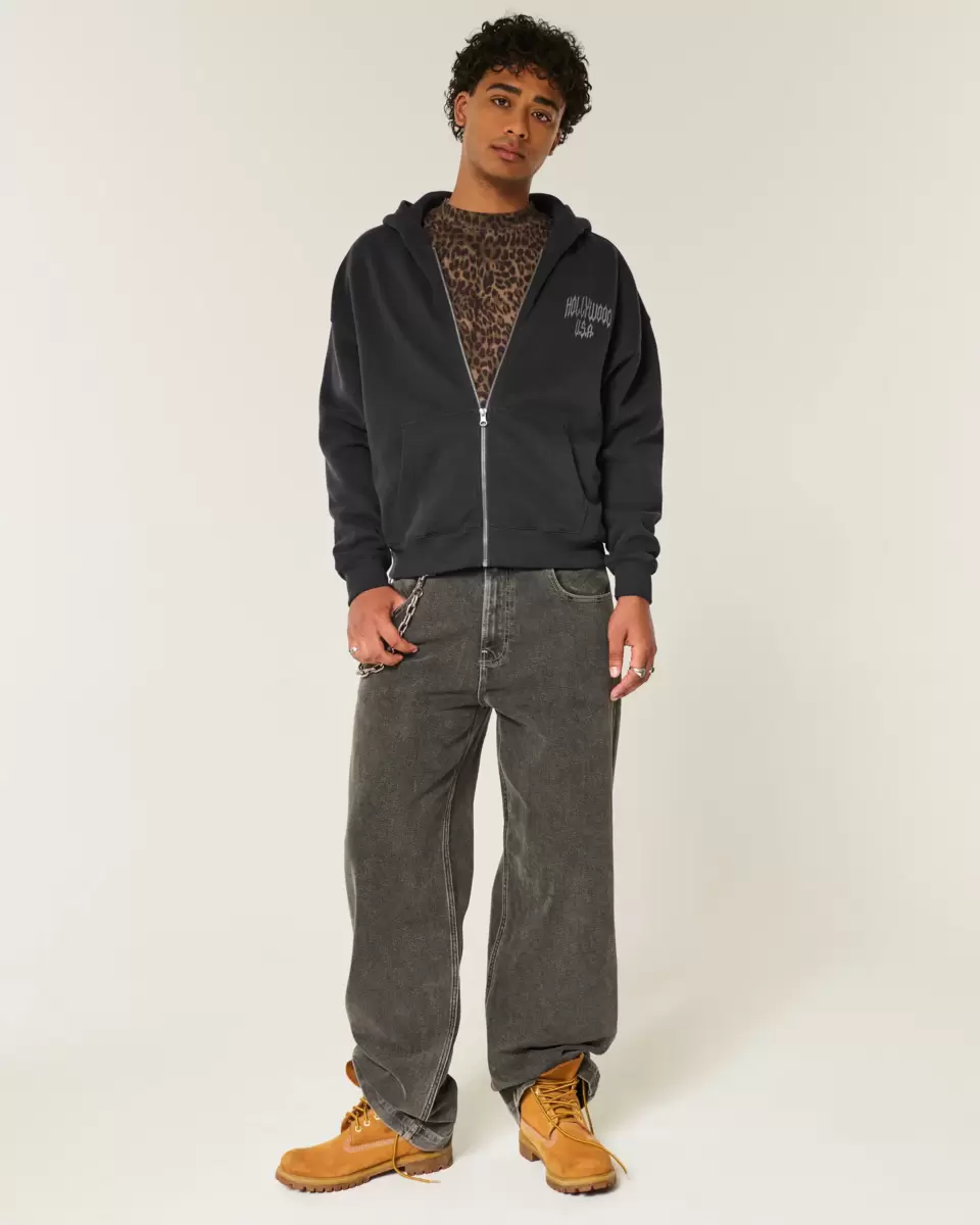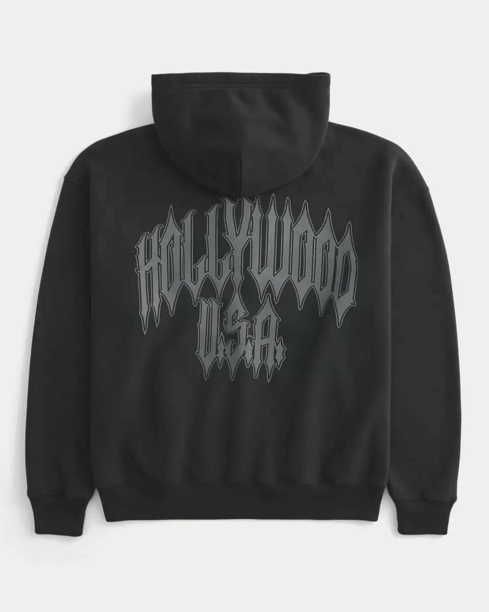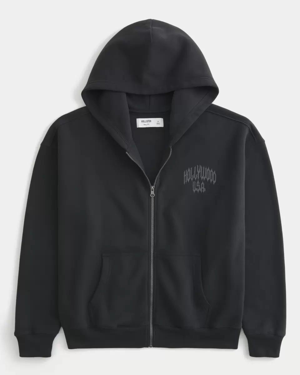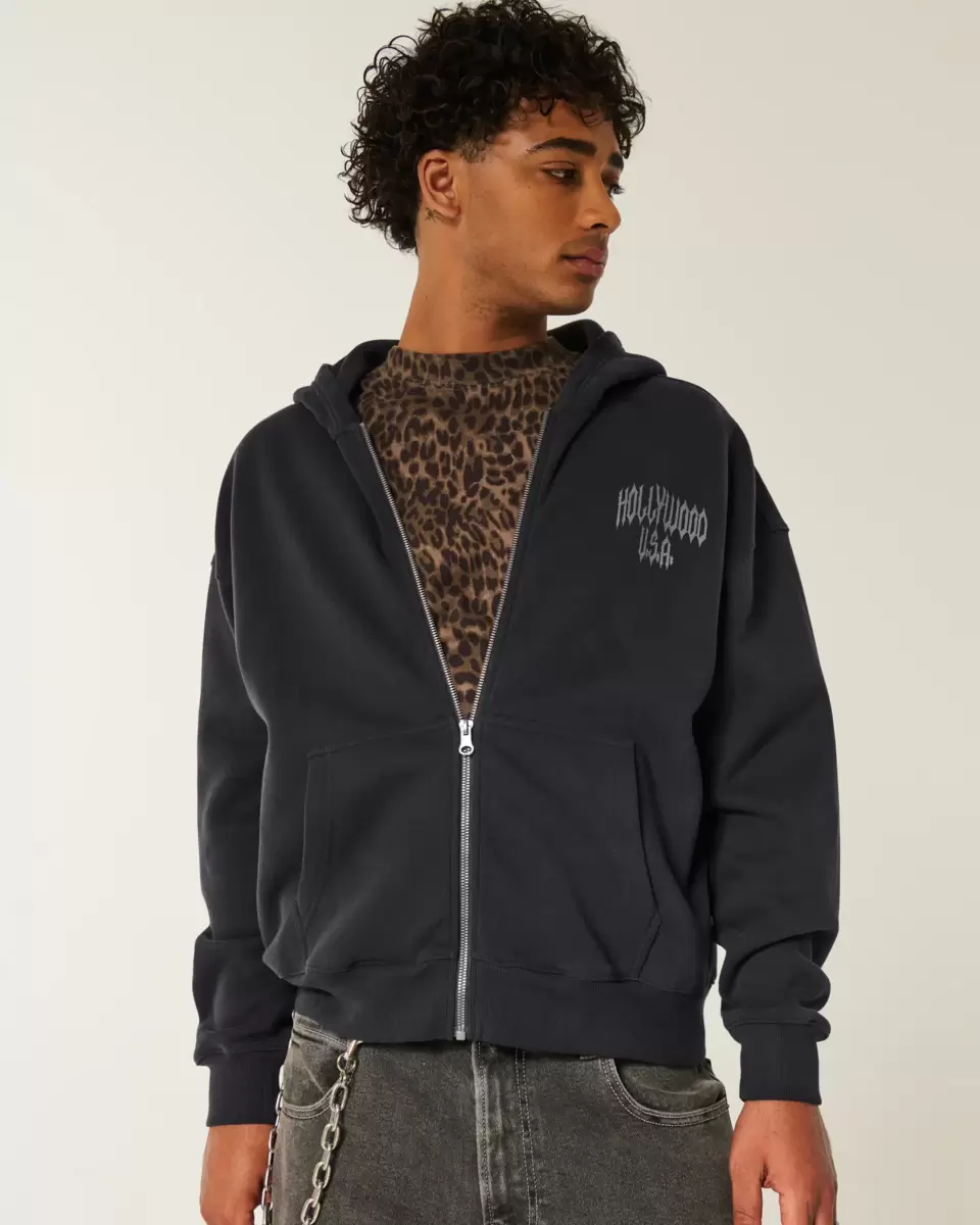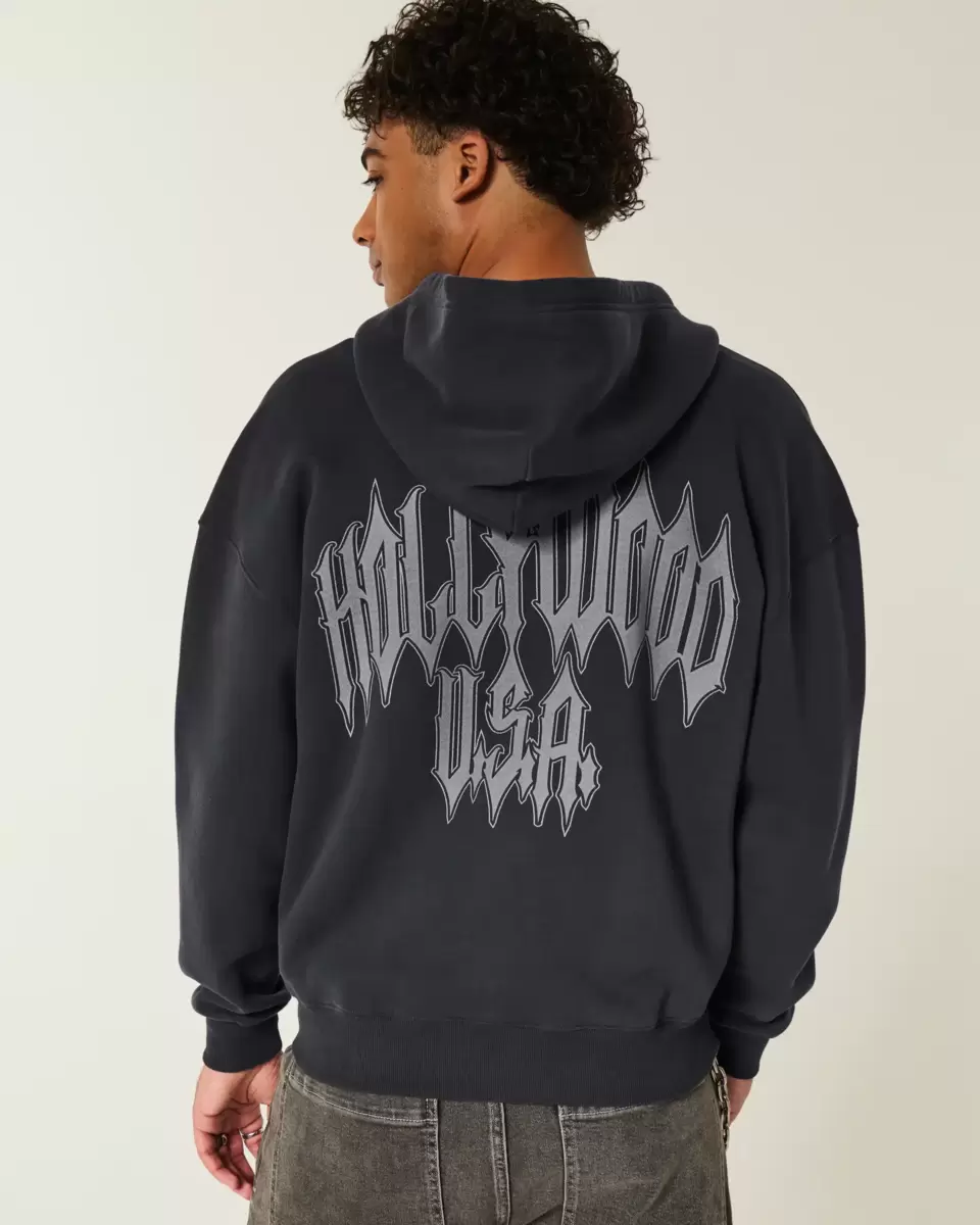 Boxy Hollywood Graphic Zip-Up Hoodie