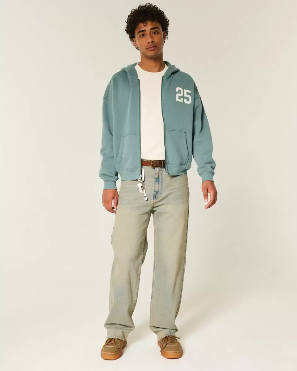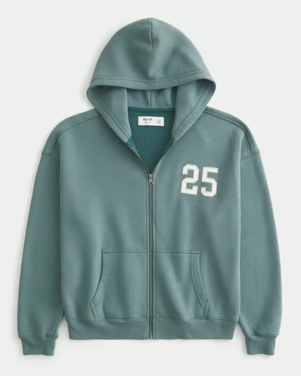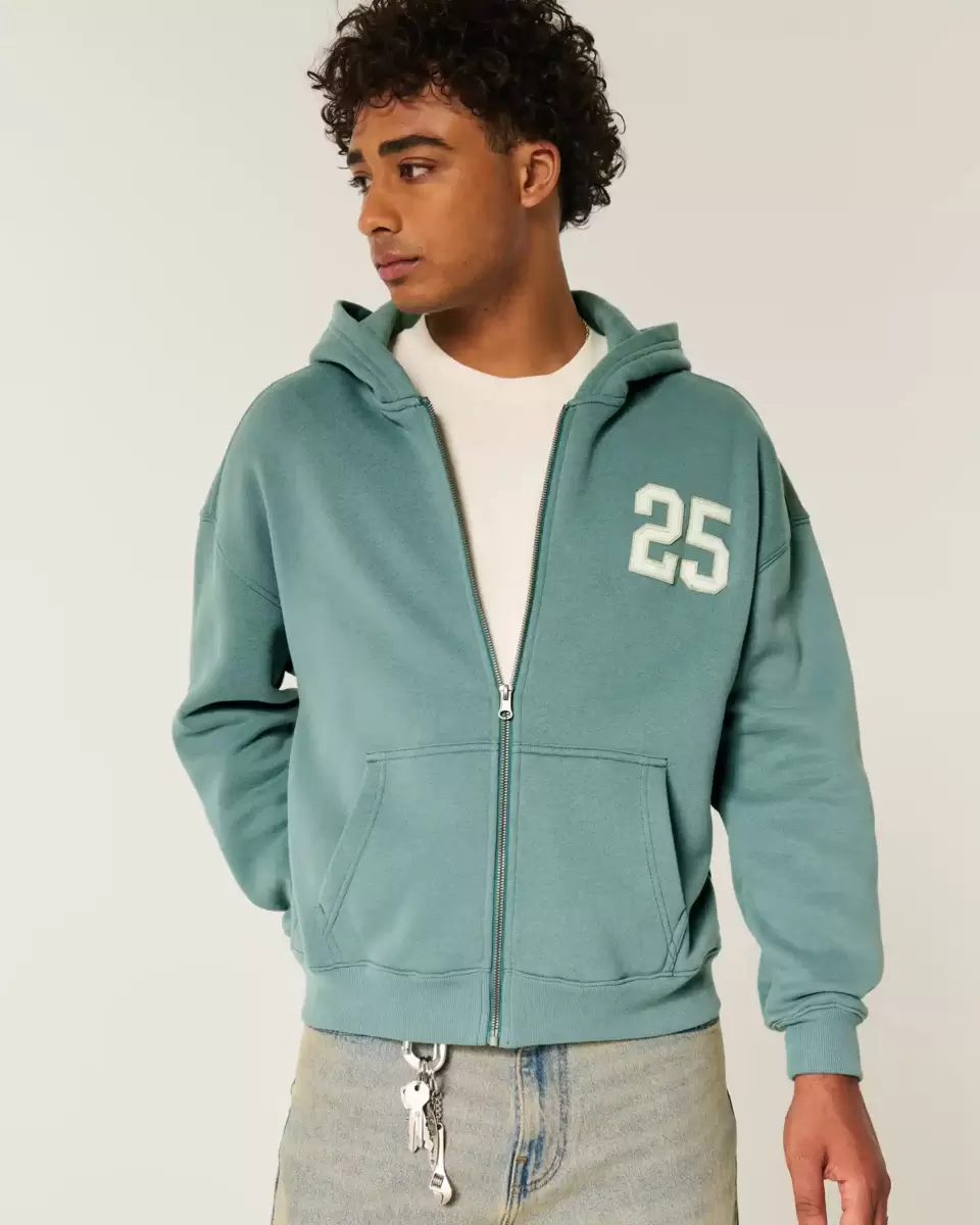 This super soft fleece hoodie features varsity-inspired number graphic applique at the left chest. Full zip-up closure, hood, front pockets, long sleeves. Boxy Fit. Imported.