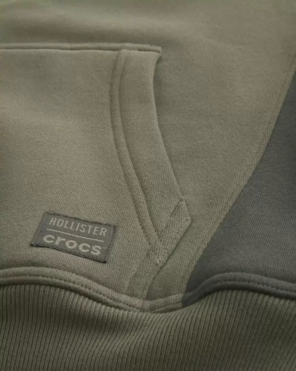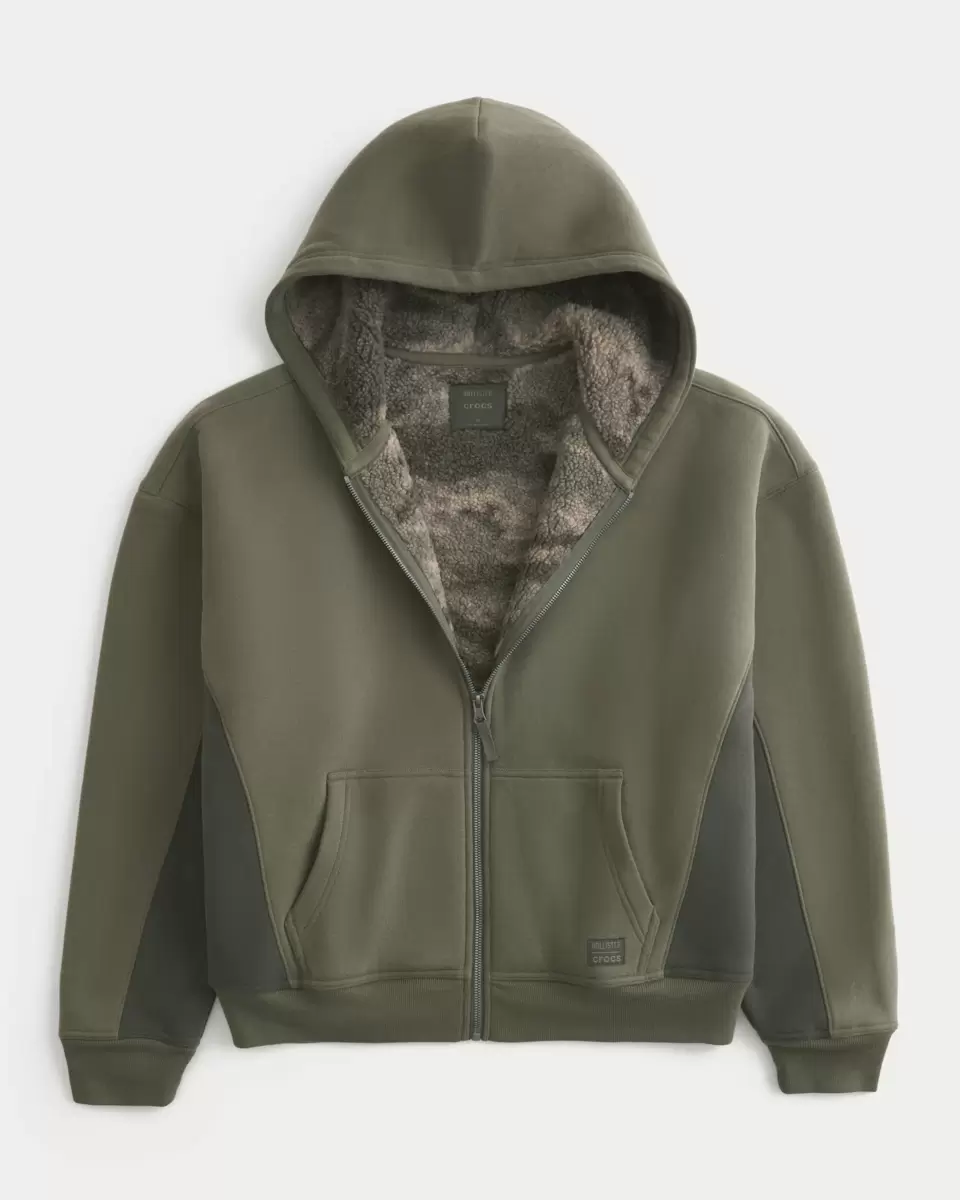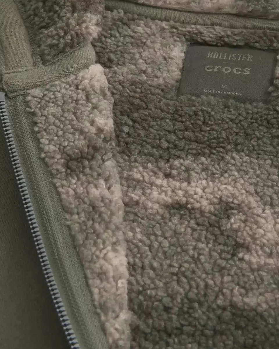 Hollister x Crocs limited-edition Dream Drop hoodie featuring Hollister’s signature soft sherpa lining with a full zip-up closure. Front pockets, logo detail, long sleeves, hood. Imported.