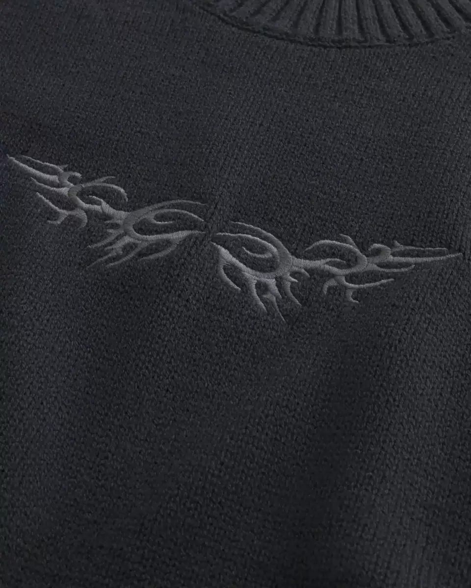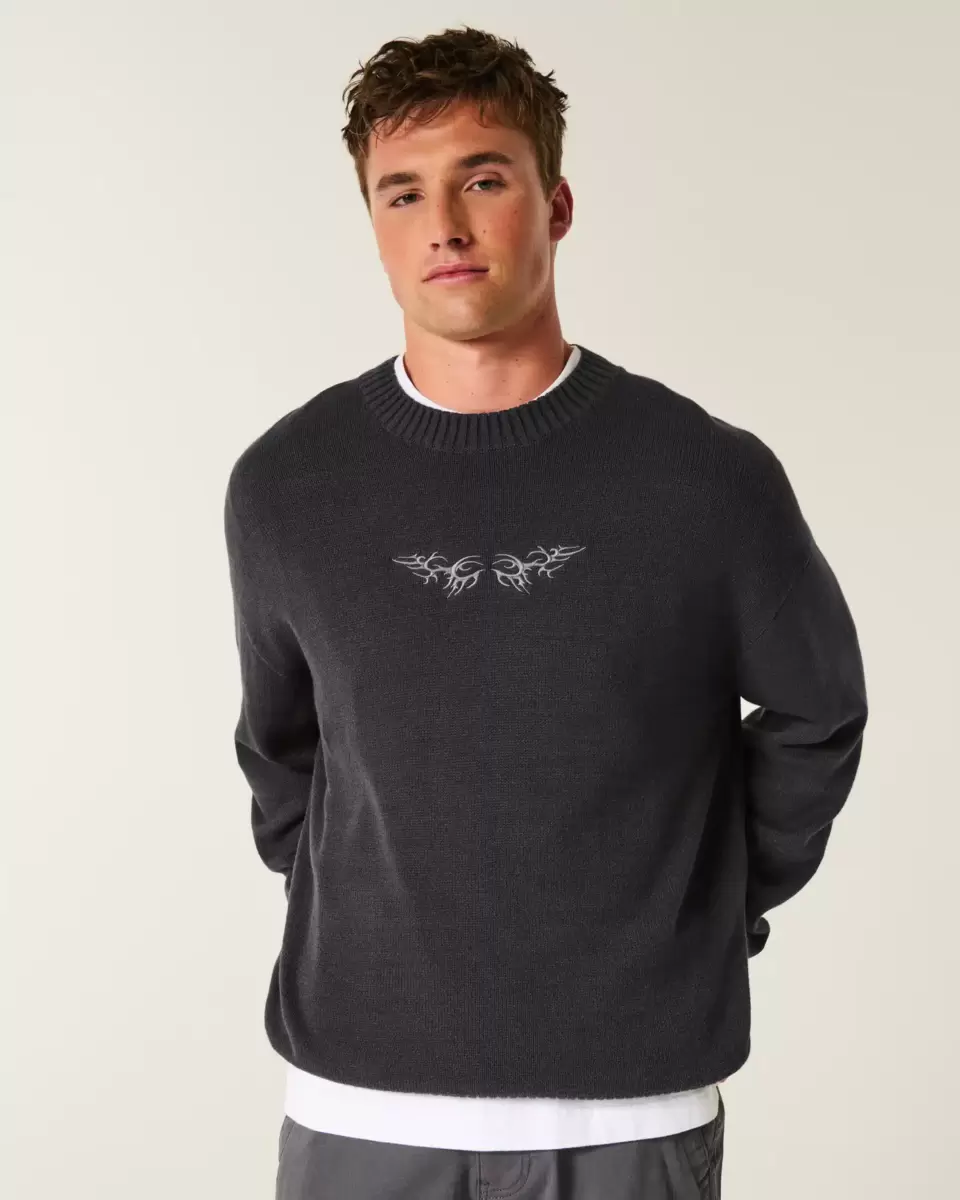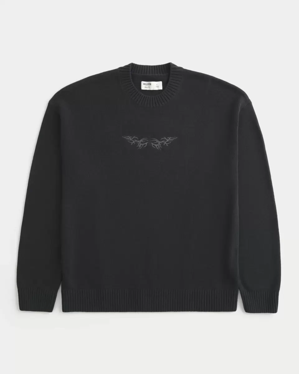 This super soft sweater features flame graphic embroidery at the center chest. Crew neckline, long sleeves, ribbed trims. Boxy Fit. Imported.
