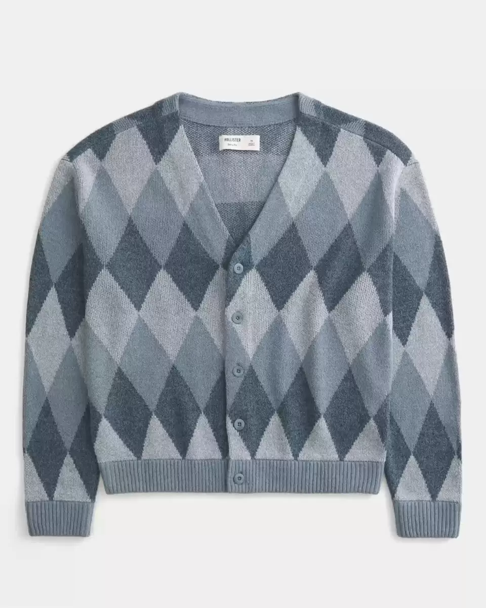 A super soft and comfortable cardigan with a v-neckline and button closure. Ribbed trims, long sleeves, classic pattern. Boxy Fit. Imported.