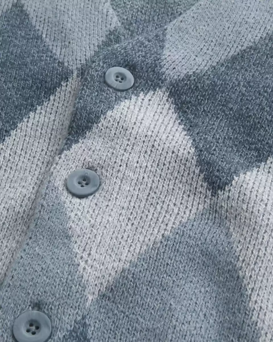 A super soft and comfortable cardigan with a v-neckline and button closure. Ribbed trims, long sleeves, classic pattern. Boxy Fit.