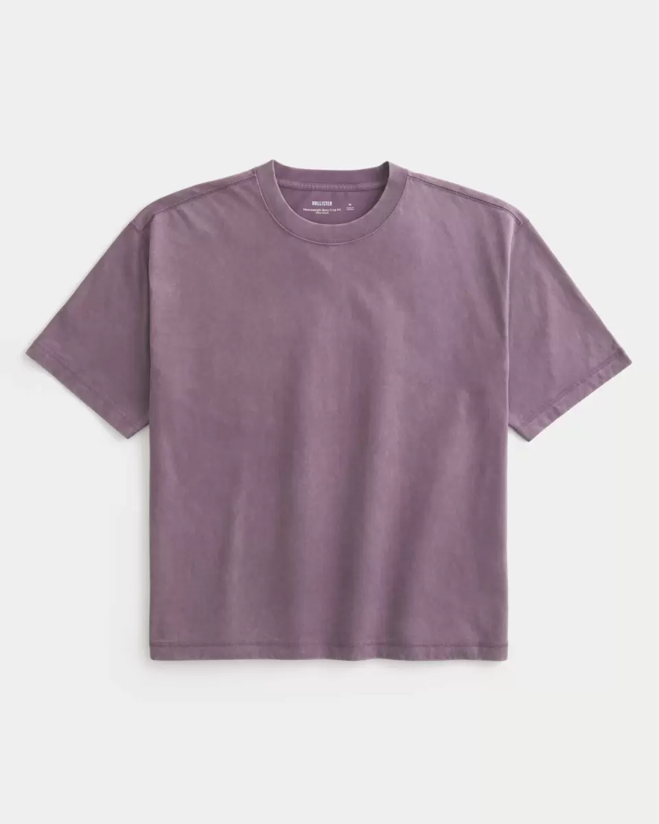 A super soft, heavyweight 100% cotton t-shirt with a crew neckline and short sleeves. Washed look. Boxy Crop Fit.