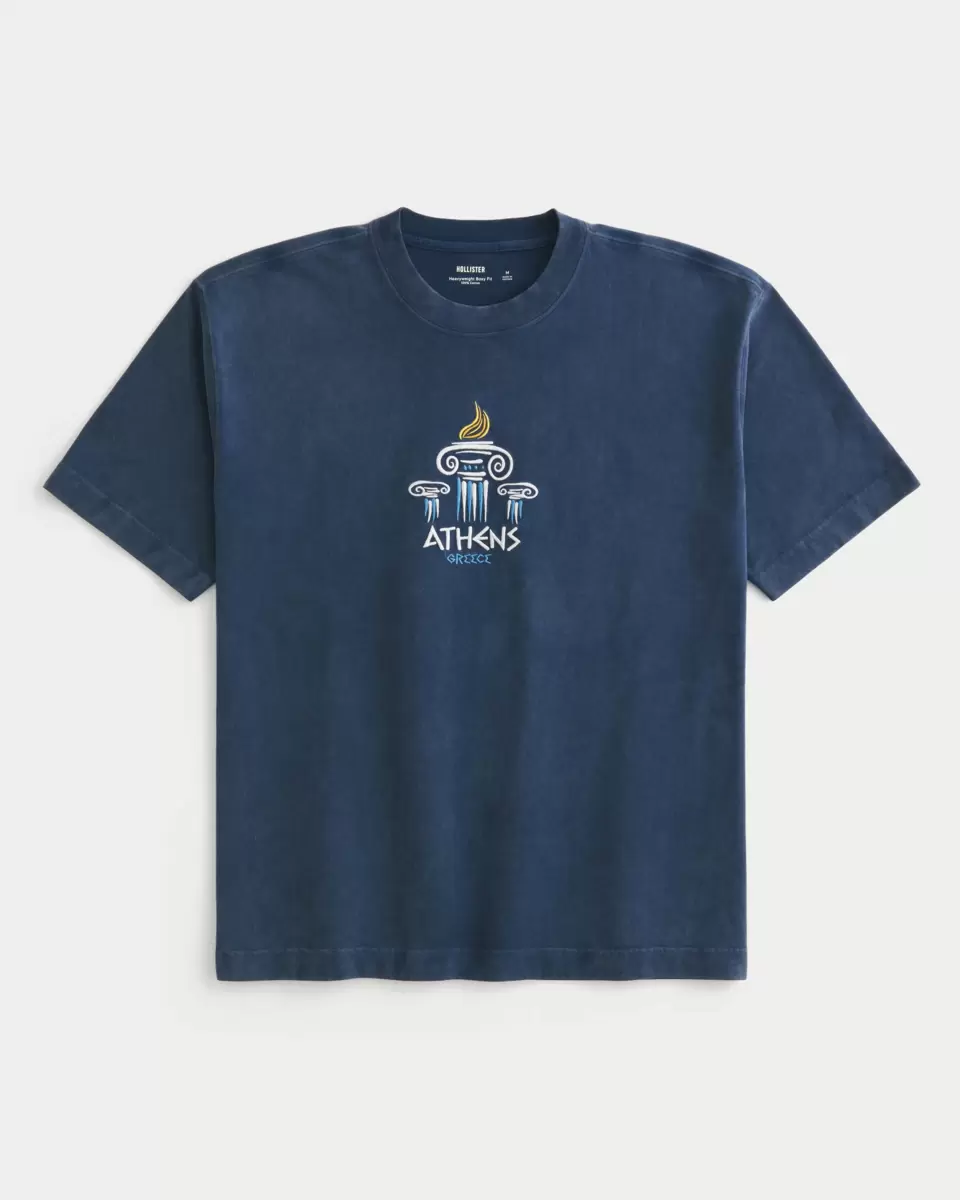 This super soft tee is made with heavyweight 100% cotton and features Athens Greece graphic embroidery. Crew neckline, short sleeves. Boxy Fit.
