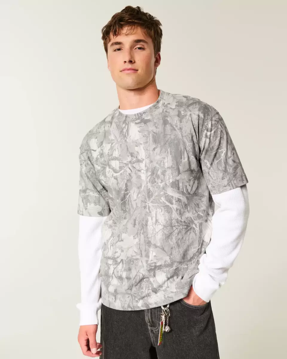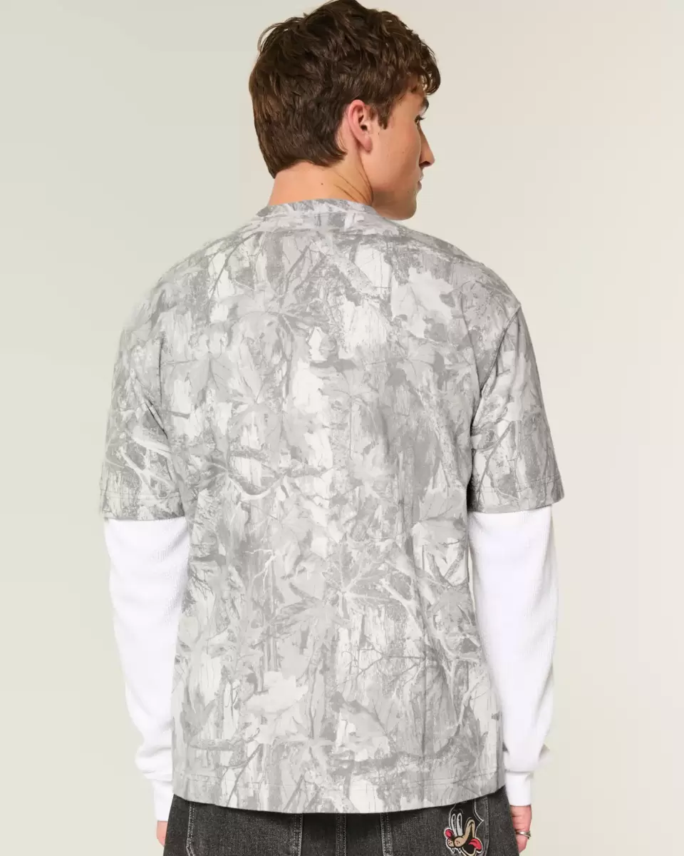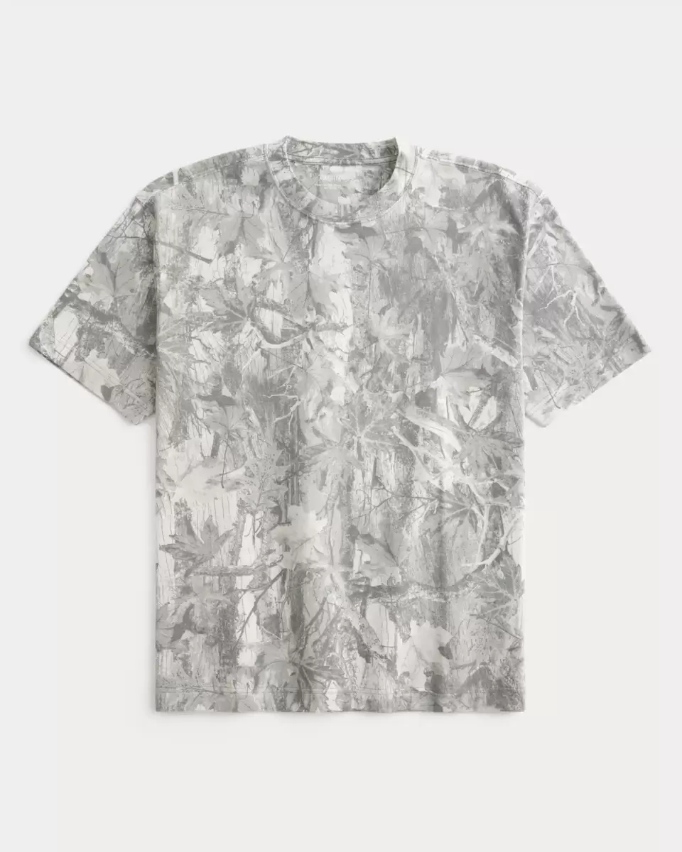 A super soft t-shirt in heavyweight fabric, featuring an all-over camo pattern. Crew neckline, short sleeves. Boxy Fit.