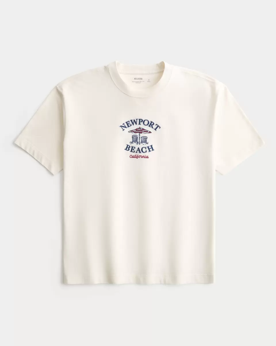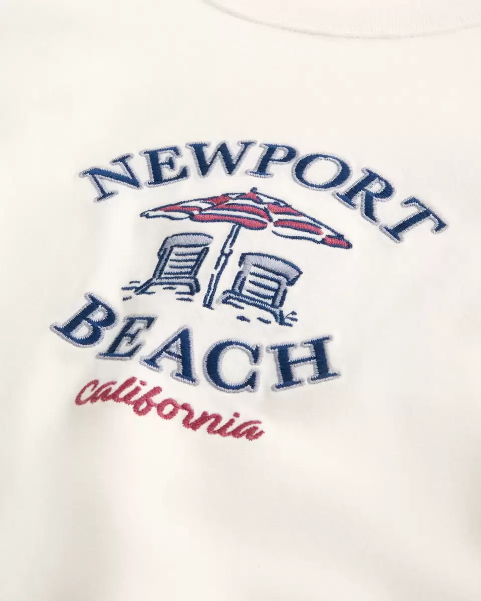 This super soft tee is made with heavyweight 100% cotton and features Newport Beach California graphic embroidery. Crew neckline, short sleeves. Boxy Fit.