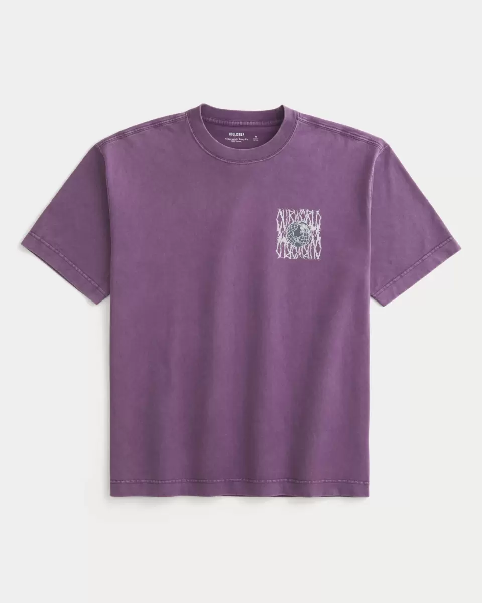 A super soft, heavyweight 100% cotton tee featuring Our World print graphics at the left chest and back. Crew neckline, short sleeves. Boxy Fit.
