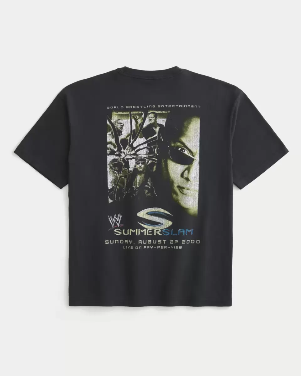 A super soft tee featuring official licensed WWE SummerSlam print graphics at the front and back. Crew neckline, short sleeves. Boxy Fit. Imported.