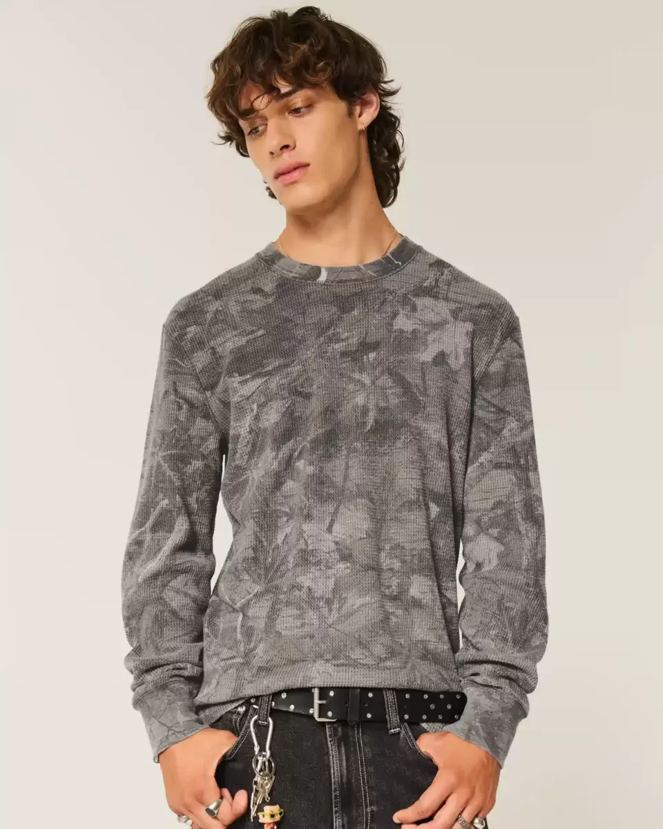 A long-sleeve shirt in super soft thermal fabric with an all-over camo pattern and crew neckline. Relaxed Fit. Imported.