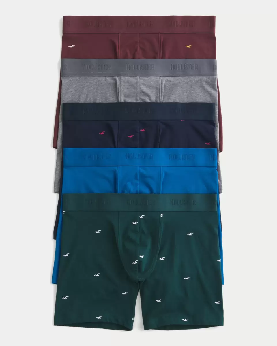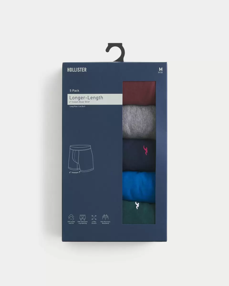 A 5-pack of our Longer-Length Boxer Briefs designed with comfortable, stretch knit fabric and contour pouch for support. Soft elastic waistband with logo details. 3 logo icon patte