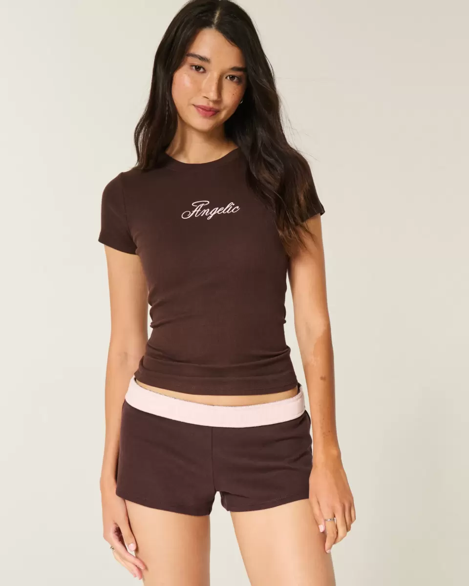 Super soft fleece mini shorts with a banded waist that looks cute folded over. Imported.