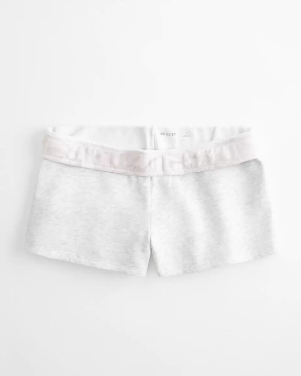 Super soft fleece mini shorts with a banded waist with interior camo pattern that looks cute folded over. Imported.