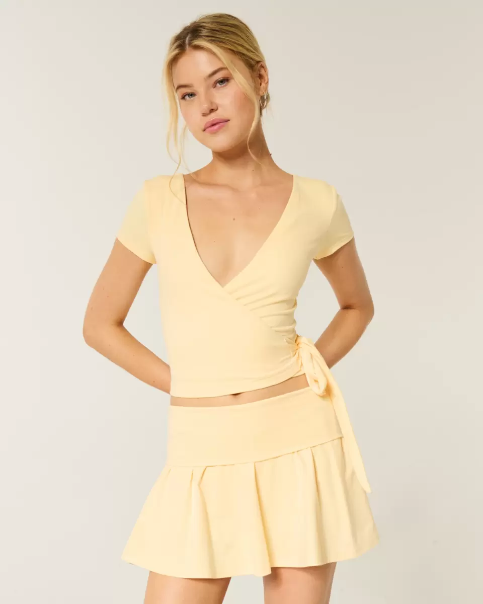 This super cute skortie is designed in our breathable, 4-way stretch, moisture-wicking Recharge fabric with a super soft, brushed feel. Foldover waist, built-in shorts. Imported.