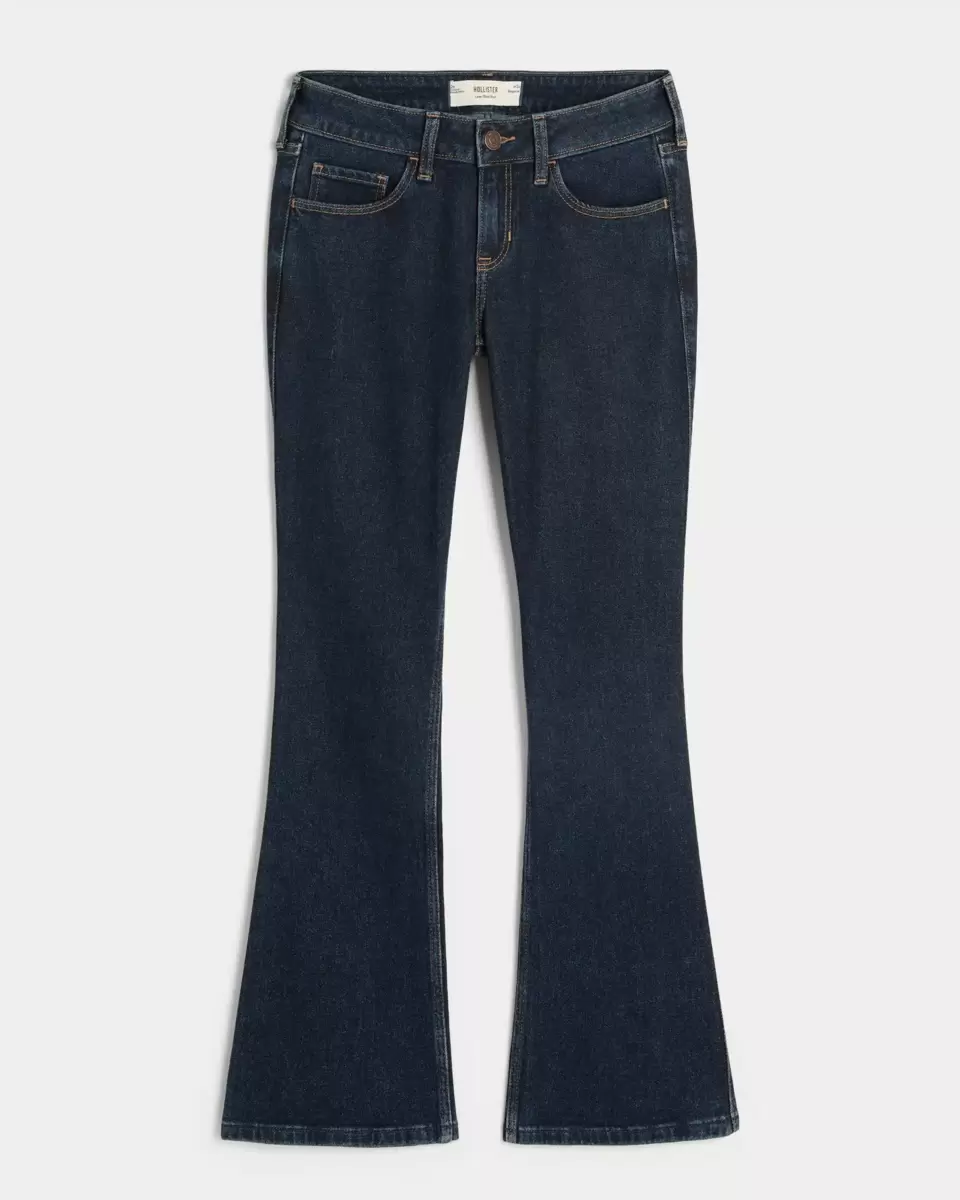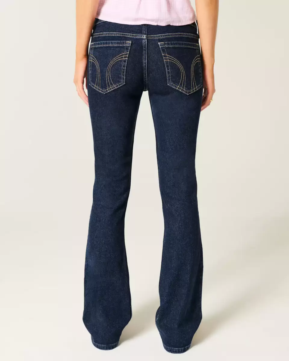 Comfortable denim jeans in a dark wash, designed with a flattering low-rise waist, slim leg and bootcut hem. Vintage Stretch denim. Imported.
