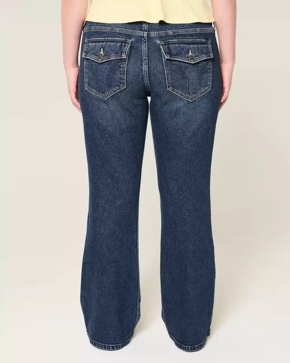 Comfortable denim jeans in a dark wash, designed with a flattering low-rise waist, slim leg and bootcut hem. Vintage Stretch denim, fading. Imported.