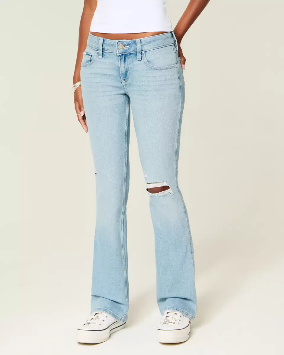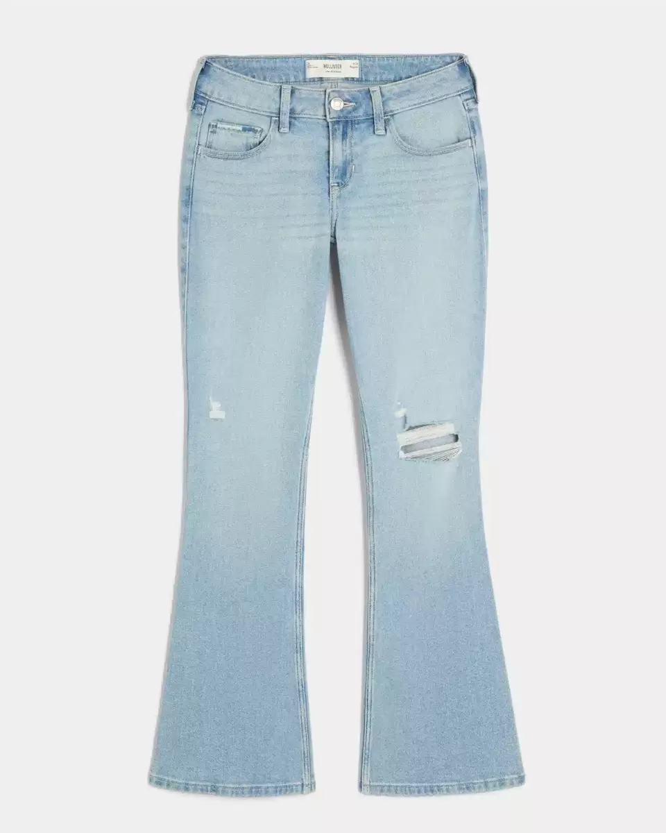 Comfortable jeans in Vintage Stretch denim, designed with a low-rise waist and boot hem. Light wash with fading and whiskering, embroidered details at right coin pocket and back pocket. Imported.