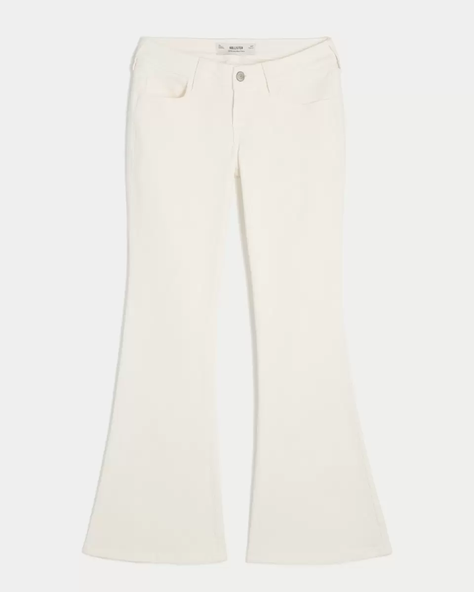 Comfortable jeans in Vintage Stretch denim, designed with an ultra low-rise waist and flared hem. Embroidered back pocket pattern. Imported.