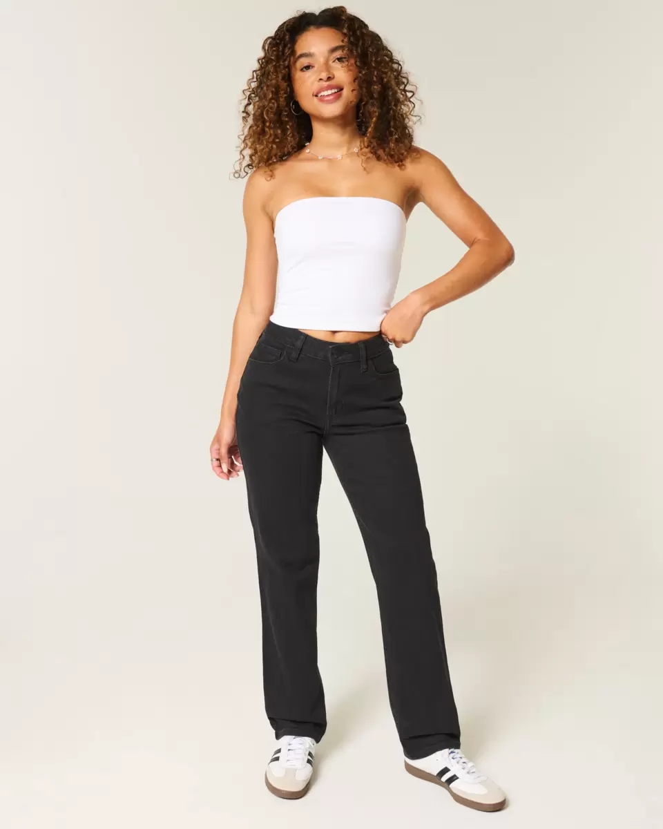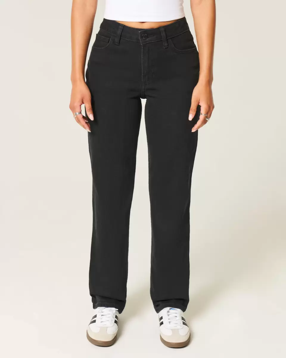 Comfortable jeans in Vintage Stretch denim, designed with a flattering high-rise waist and straight leg. Imported.