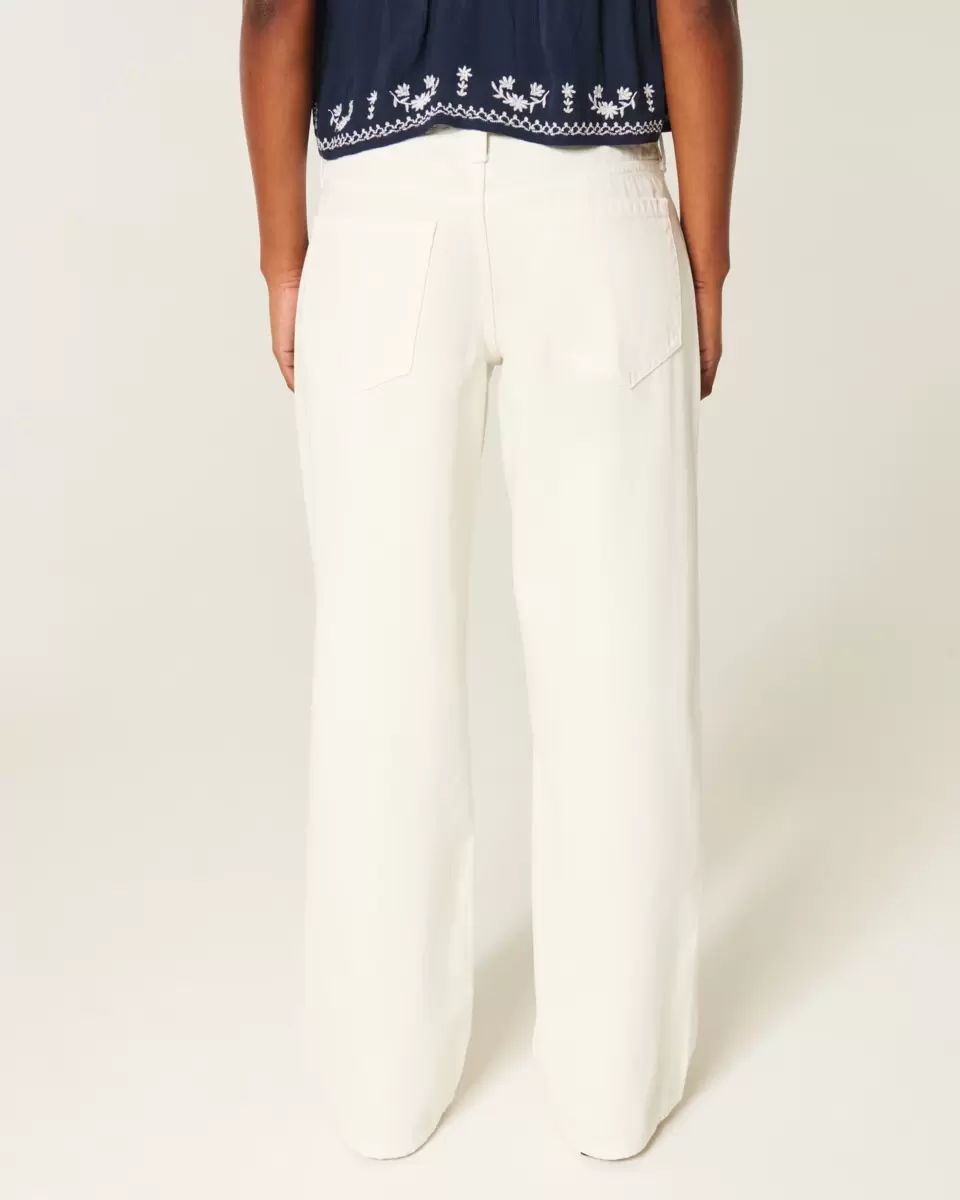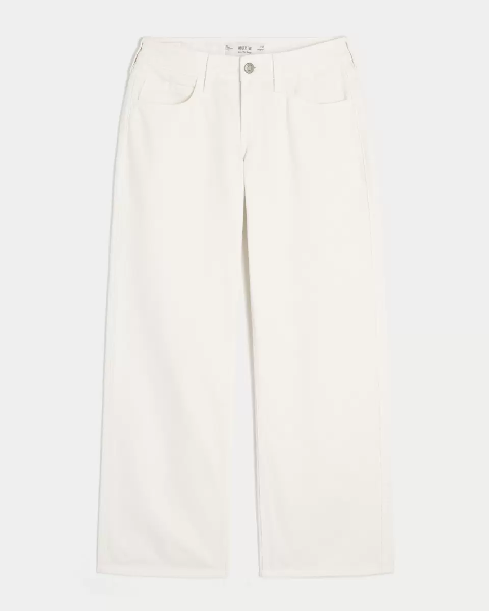 Comfortable denim jeans designed with a low-rise waist and baggy leg. White. Imported.