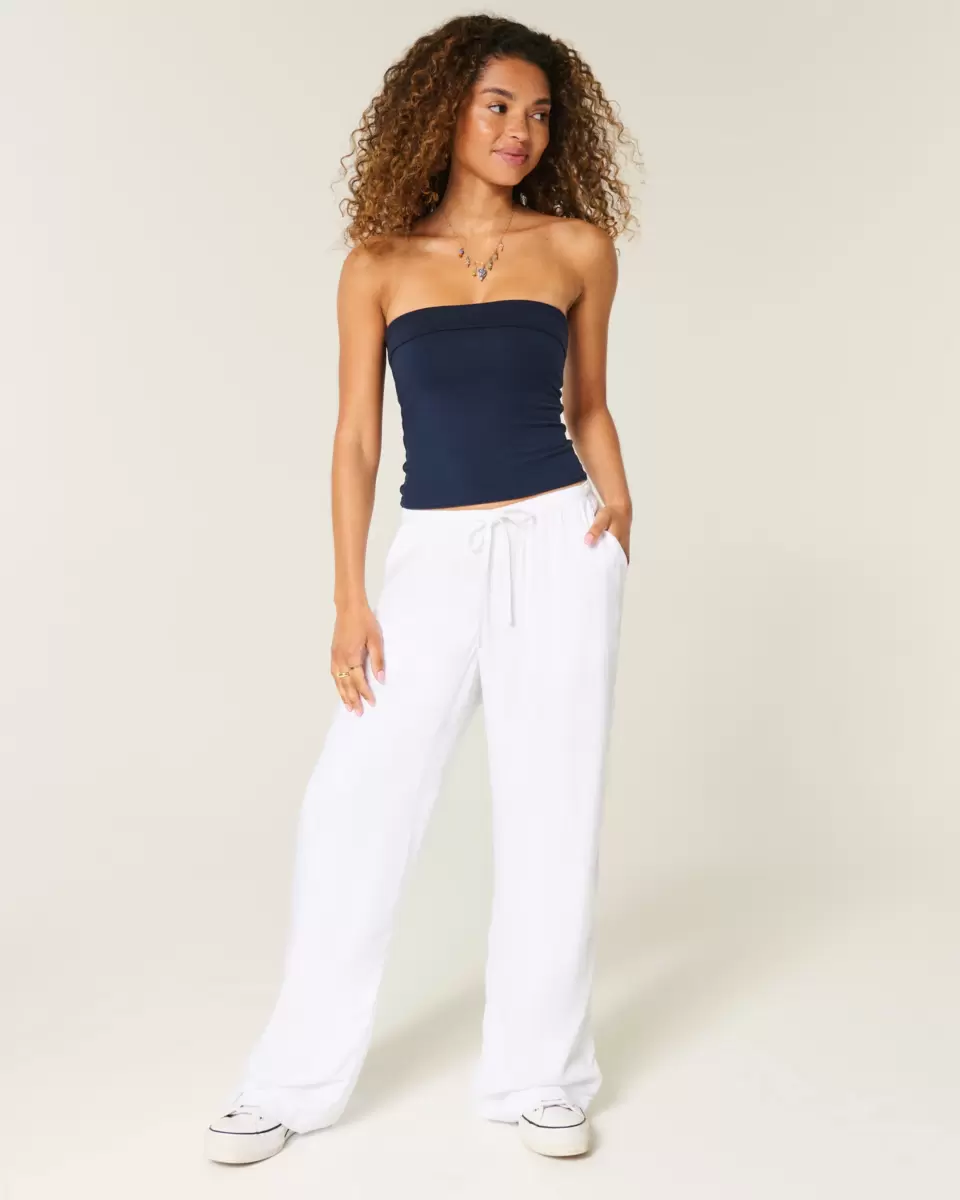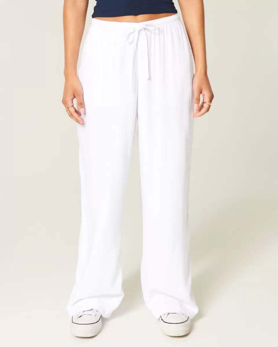 Comfy and super soft pants in slub fabric, designed with an adjustable-rise pull-on drawstring waist. Pockets.
