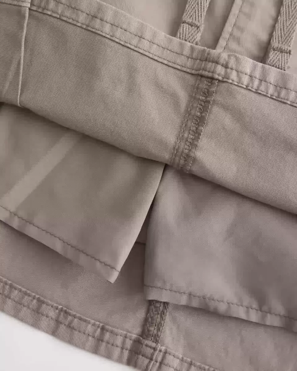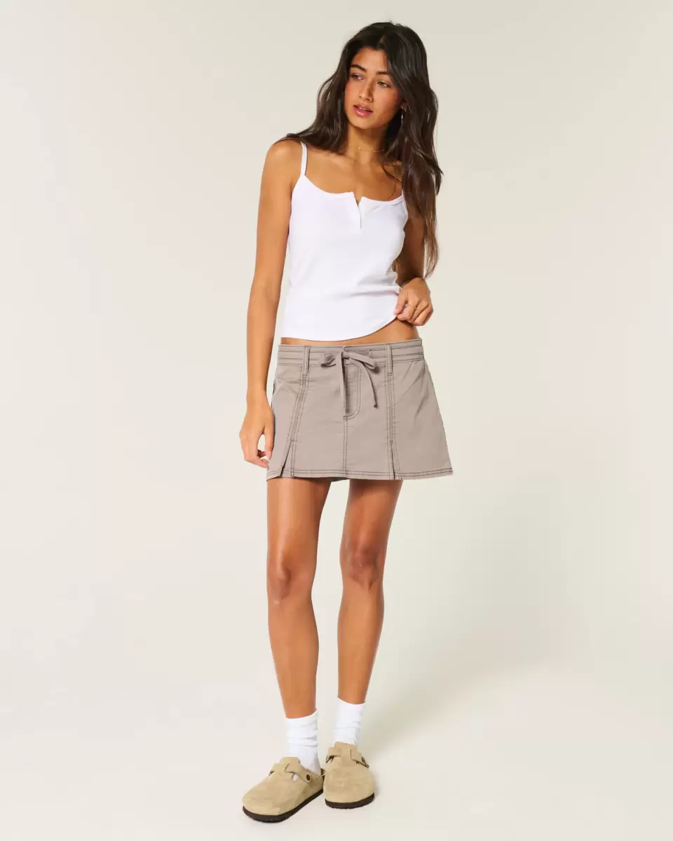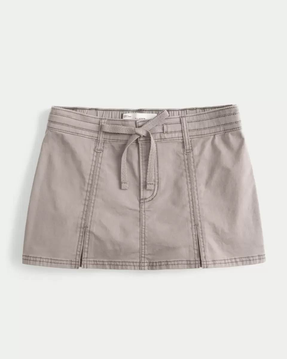 A cute and comfy mini skirt with a drawstring waist and pleat-style seam details for a classic tailored look. Imported.