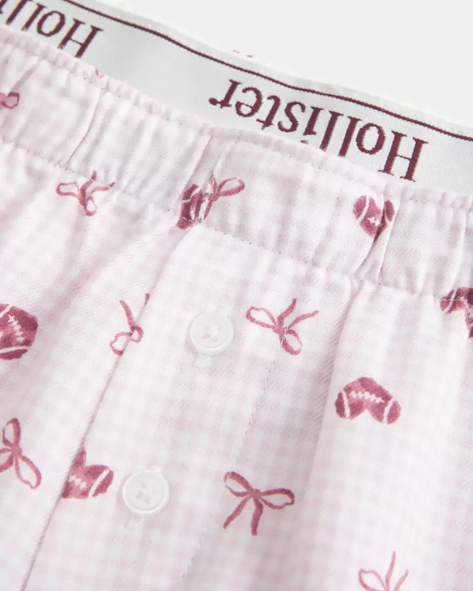 Super soft flannel boxer shorts with an all-over pattern and soft waistband with interior logo details. Pockets. Imported.