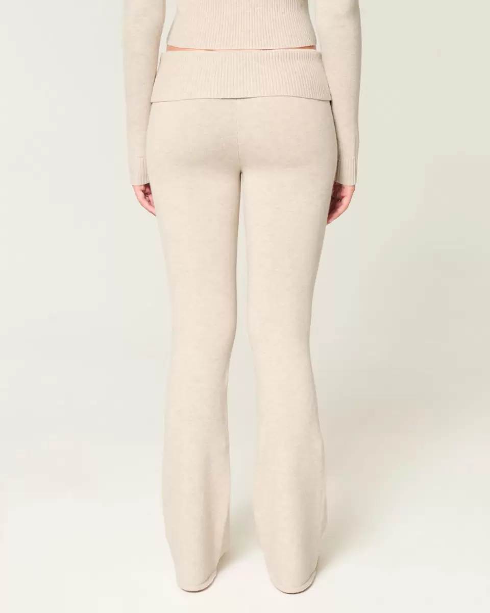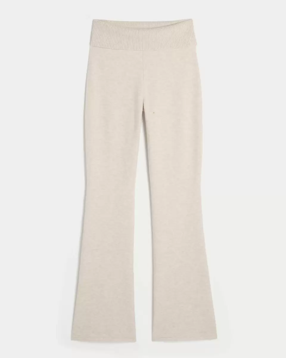Cozy and super soft sweater-knit pants designed with a foldover waist, slim leg and boot hem. Imported.