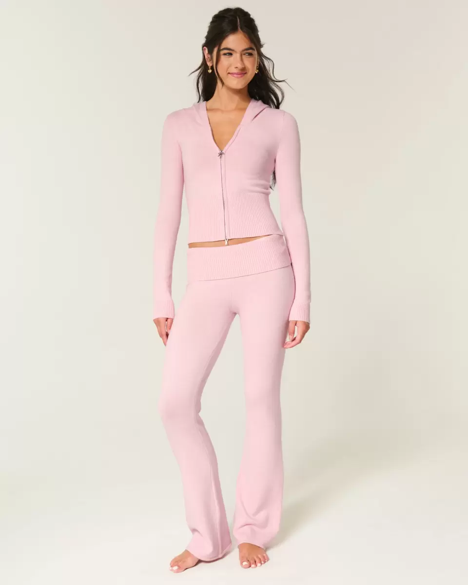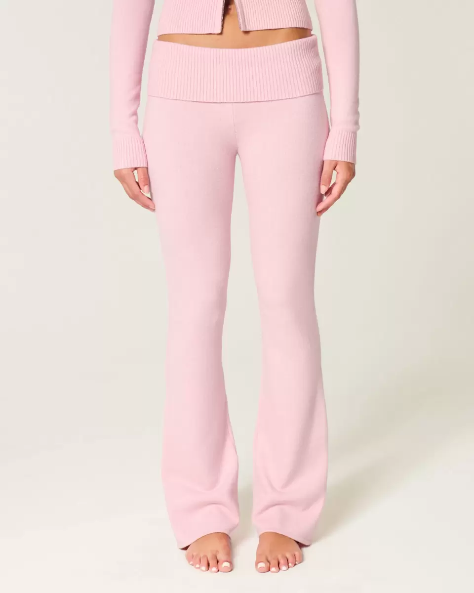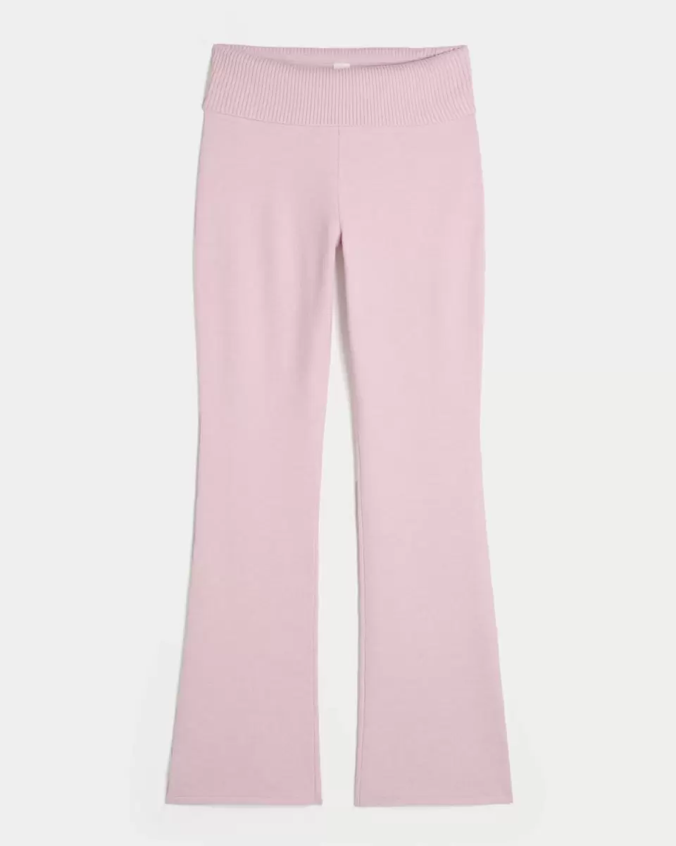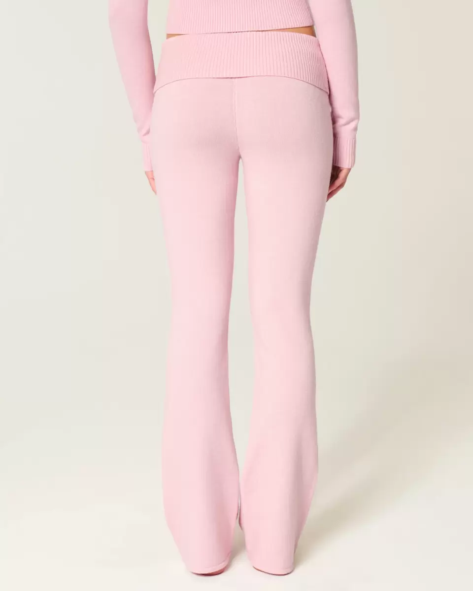 Cozy and super soft sweater-knit pants designed with a foldover waist, slim leg and boot hem. Imported.